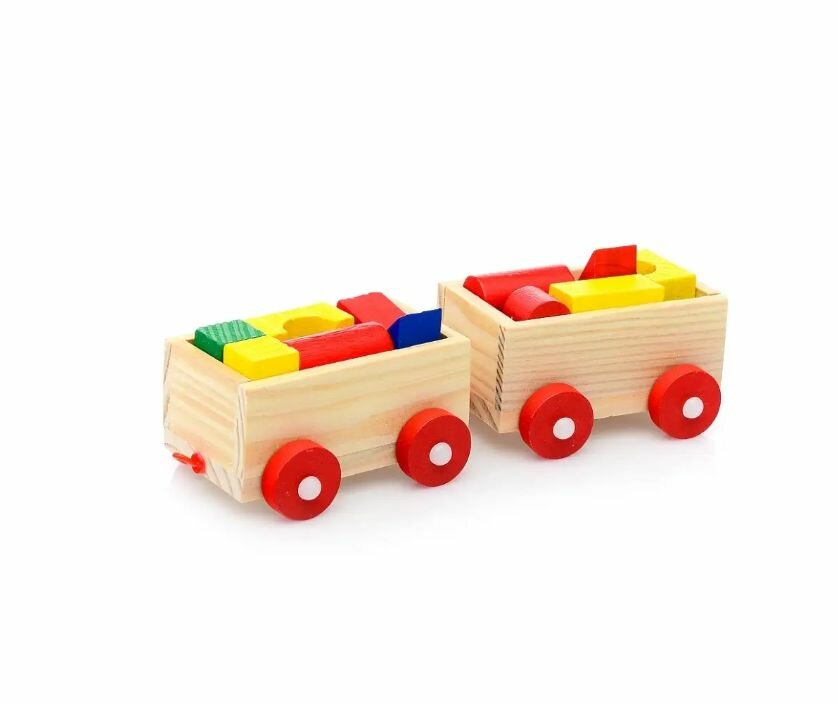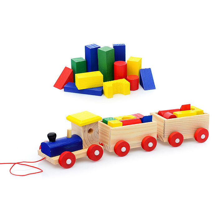 Каталка "Паровозик" с конструктором, 28 см, дерево, от 1 года