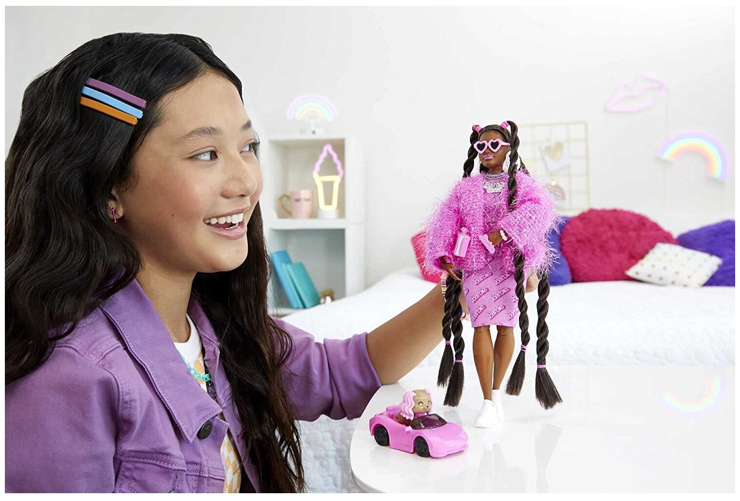 Barbie Кукла Экстра с радужными косичками, GRN29