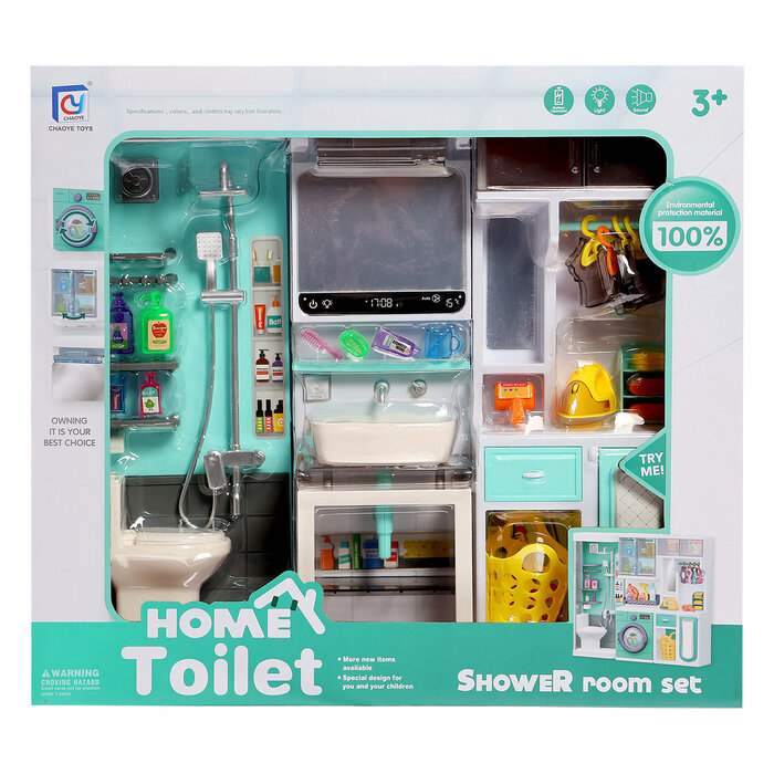 Мебель для кукол КНР "Ванная комната": санузел, раковина, гардеробная