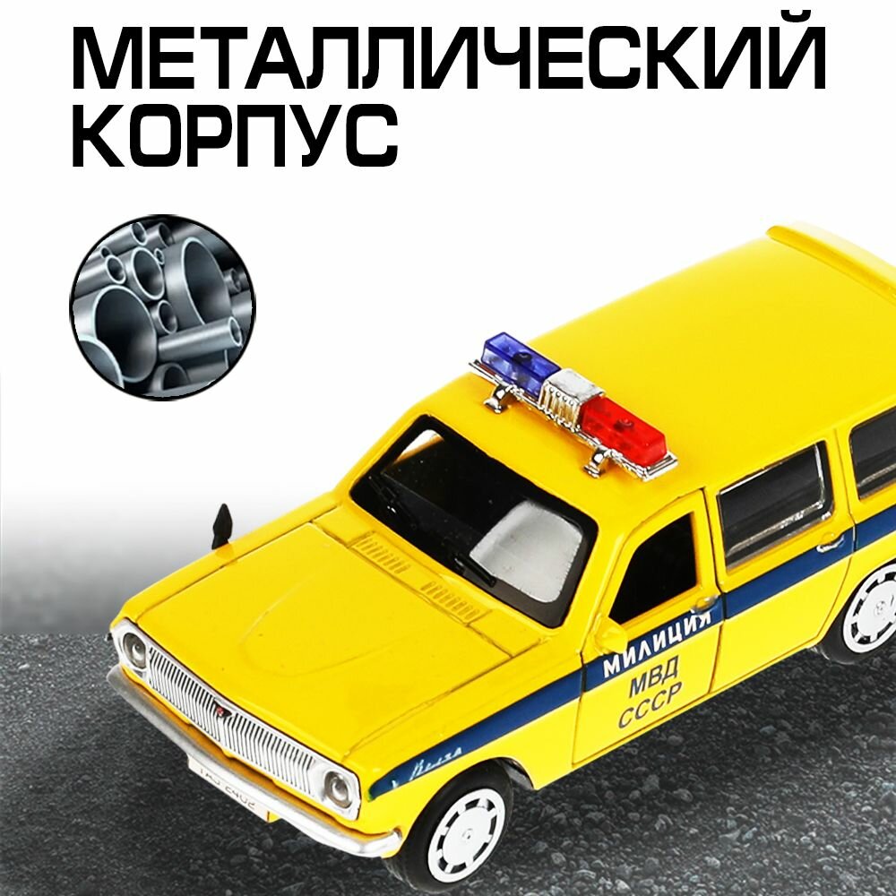 Купить Машинка детская Милиция МВД СССР ГАЗ 2402 Волга 12 см, Технопарк, желтая, полиция, открываются двери и багажник, свет и звук