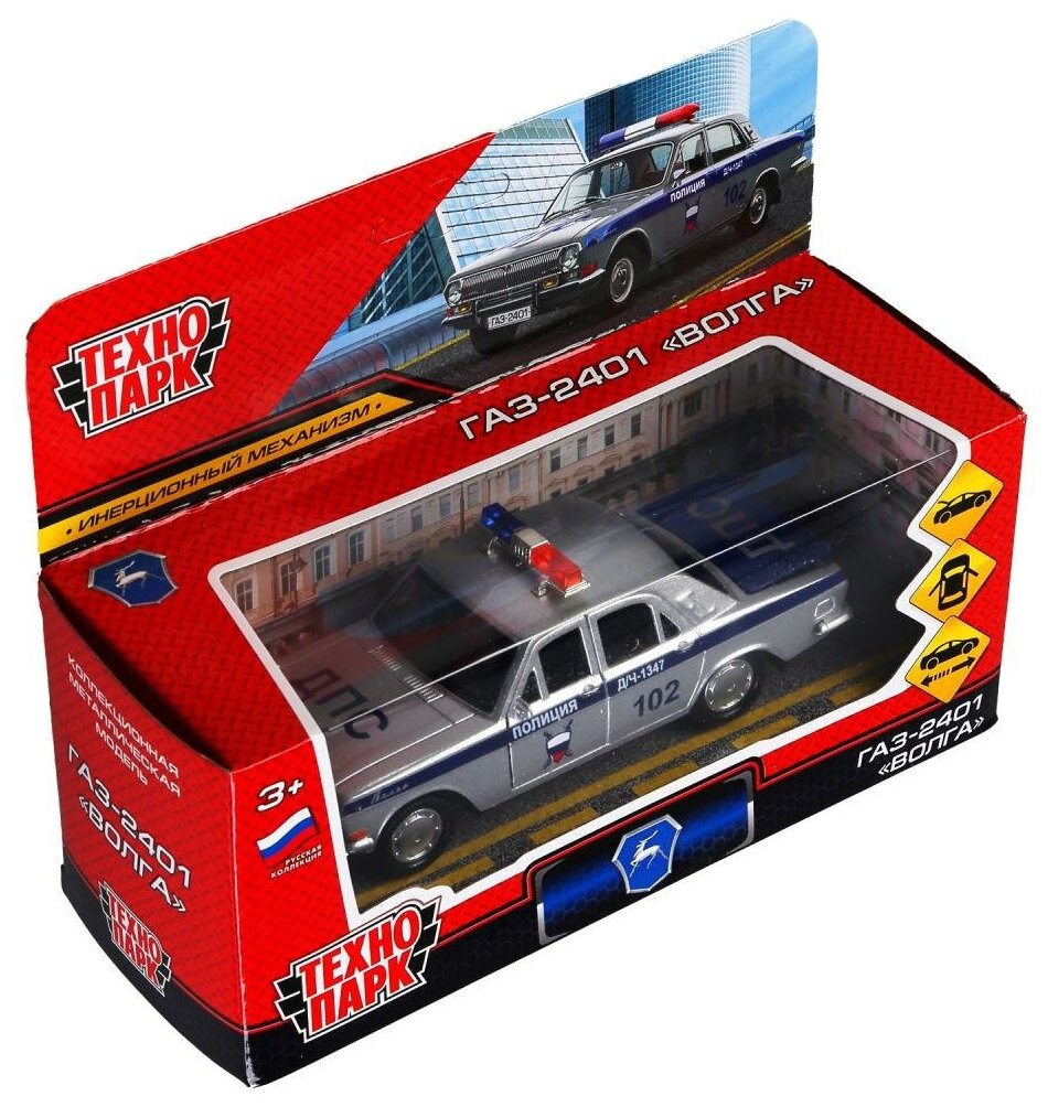 | Дополнительная информация | Машинка игрушка детская для мальчика ГАЗ-2401 Волга милиция Технопарк детская модель металлическая коллекционная инерционная |