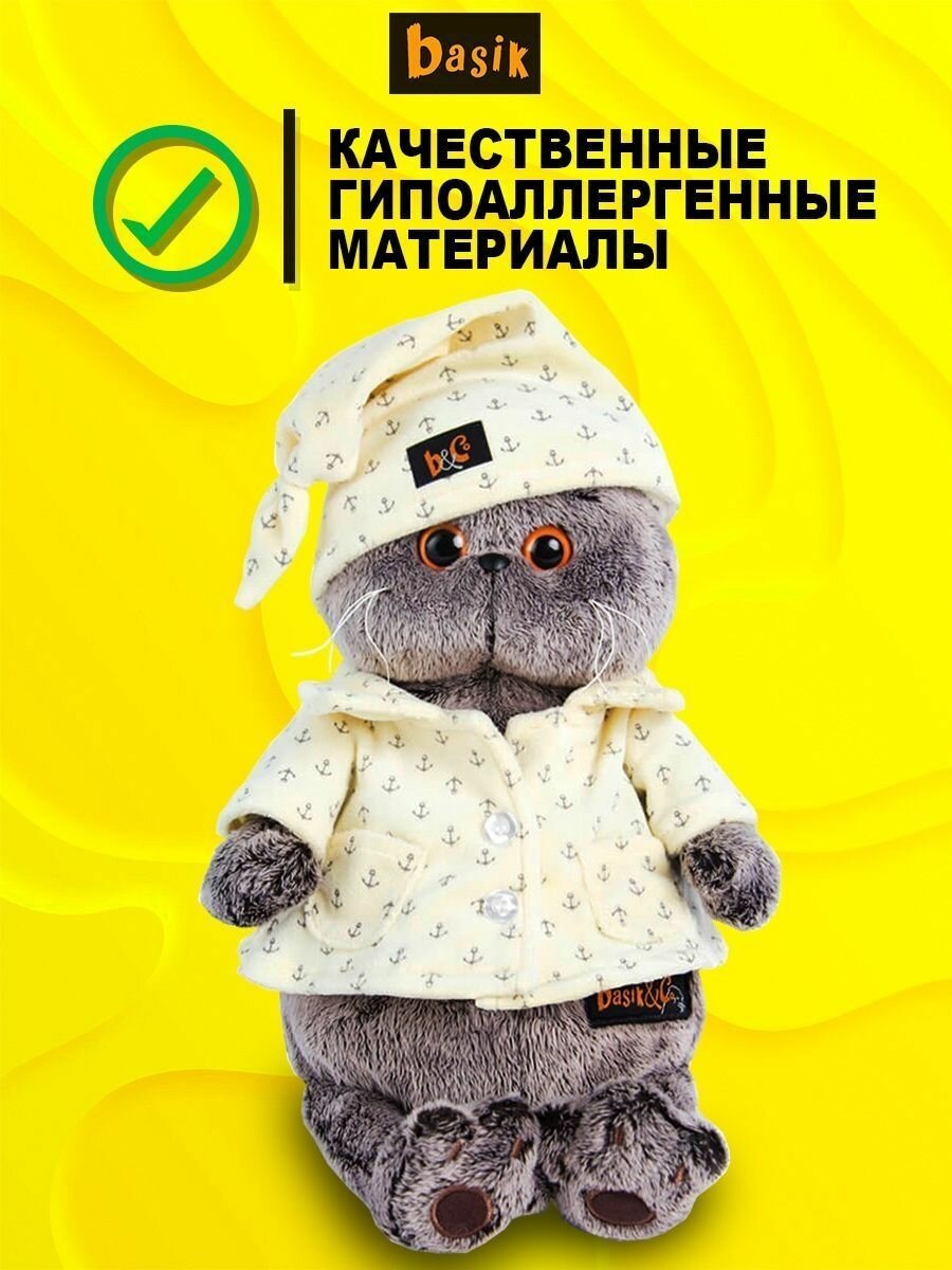 Мягкая игрушка Basik&Co Кот Басик в пижаме, 19 см, BUDIBASA