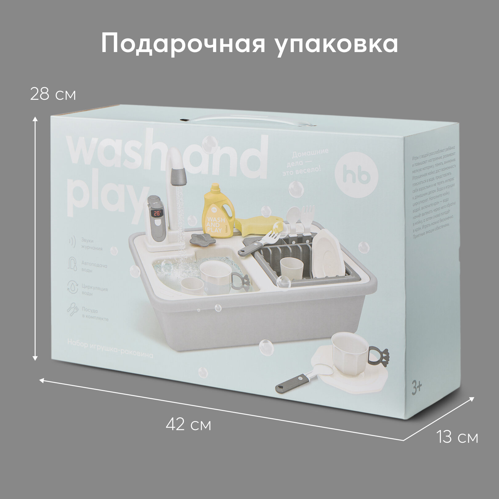 Купить 331869, Игрушечная раковина с водой WASH AND PLAY Happy Baby, игровой набор для детской кухни, 15 предметов, серый