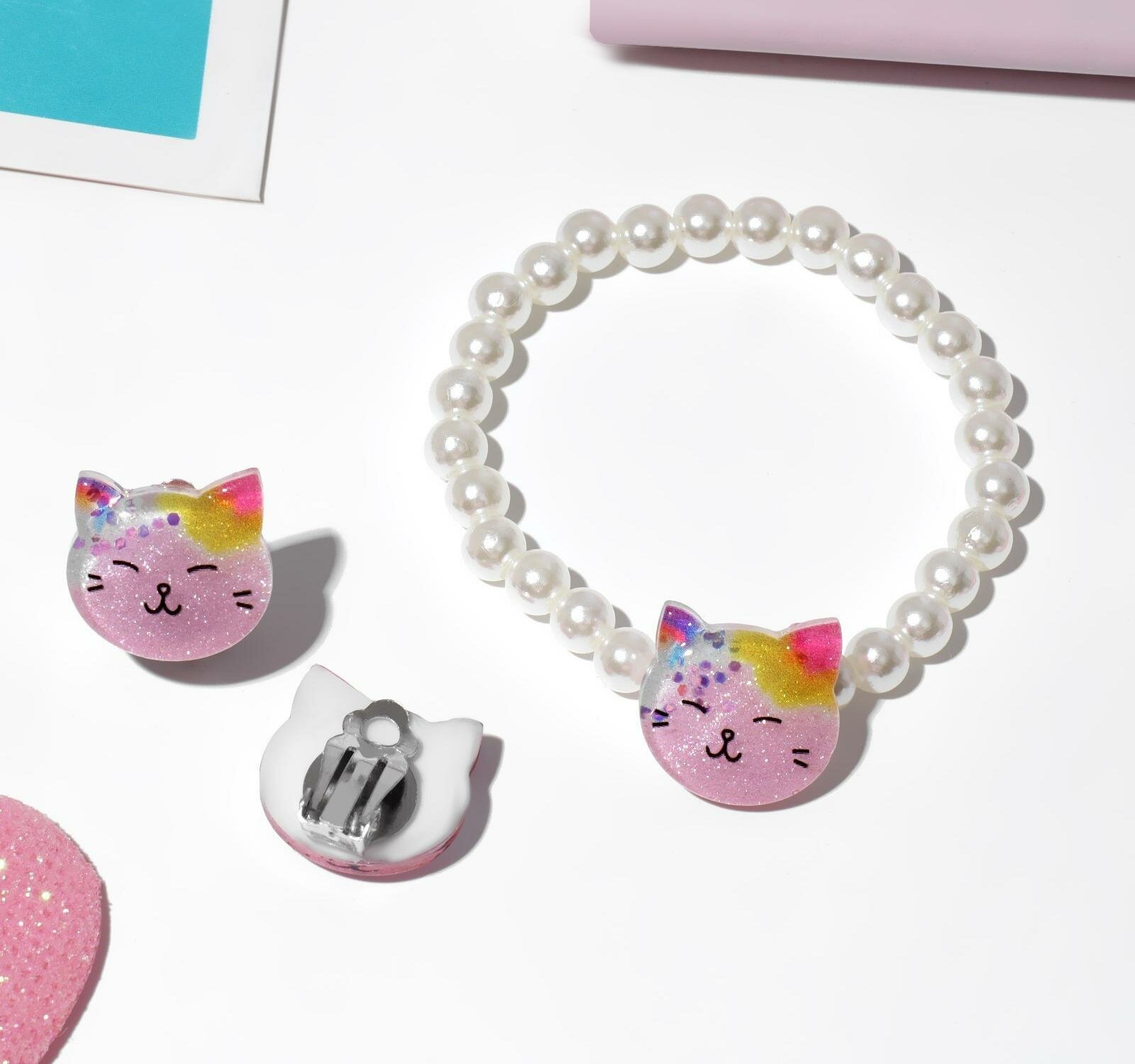 Набор детский "Выбражулька" 2 пред-та: клипсы, браслет, котик, цветной 5226987