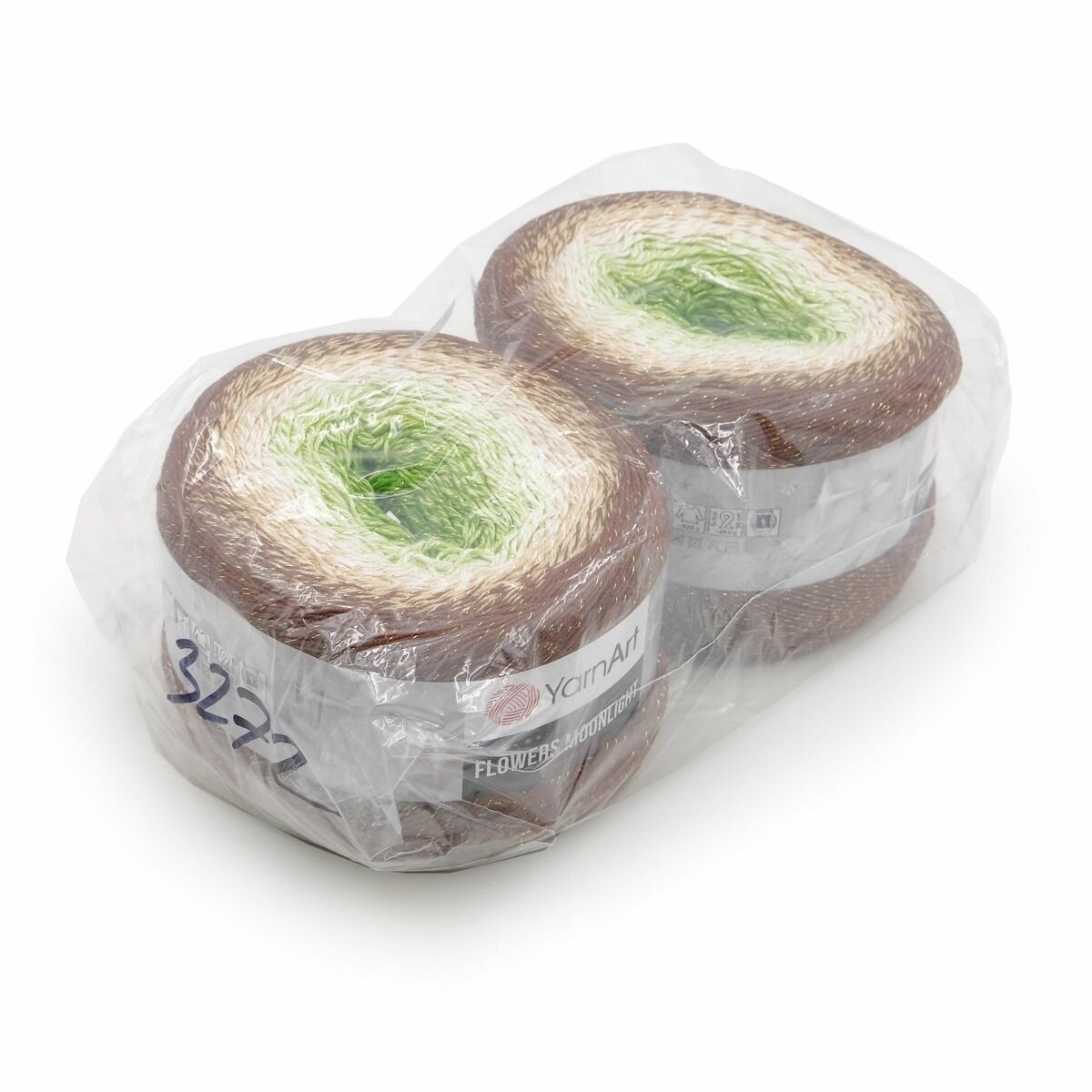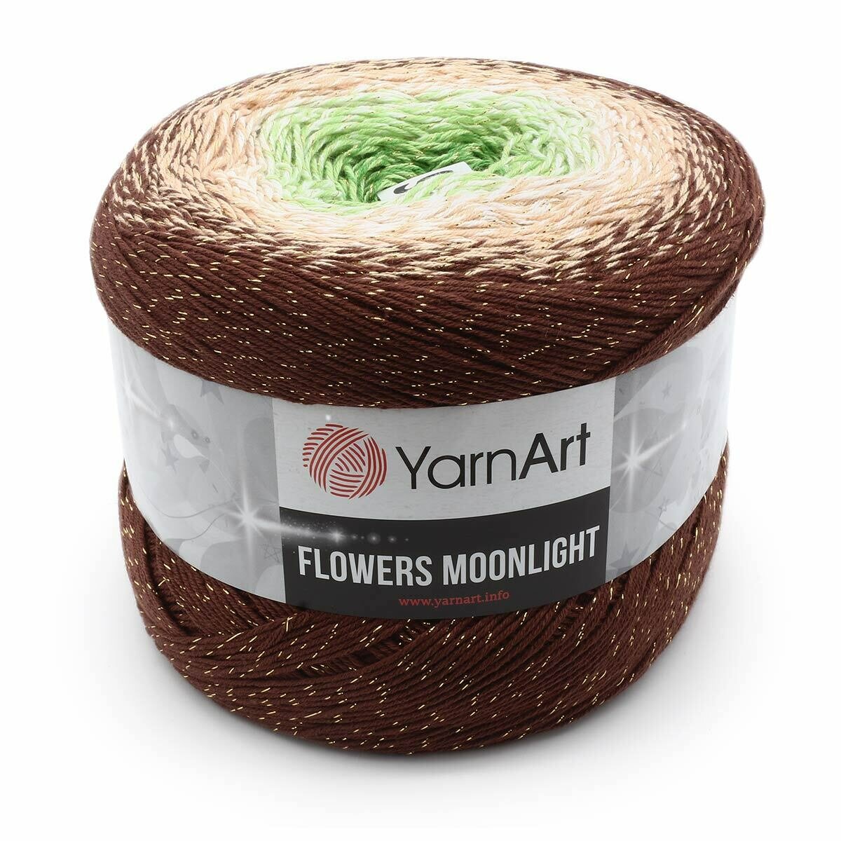 Пряжа YarnArt Flowers Moonlight коричневый-св.беж-зеленый (3272), 53%хлопок/43%акрил/4%металлик, 1000м, 260г, 1шт