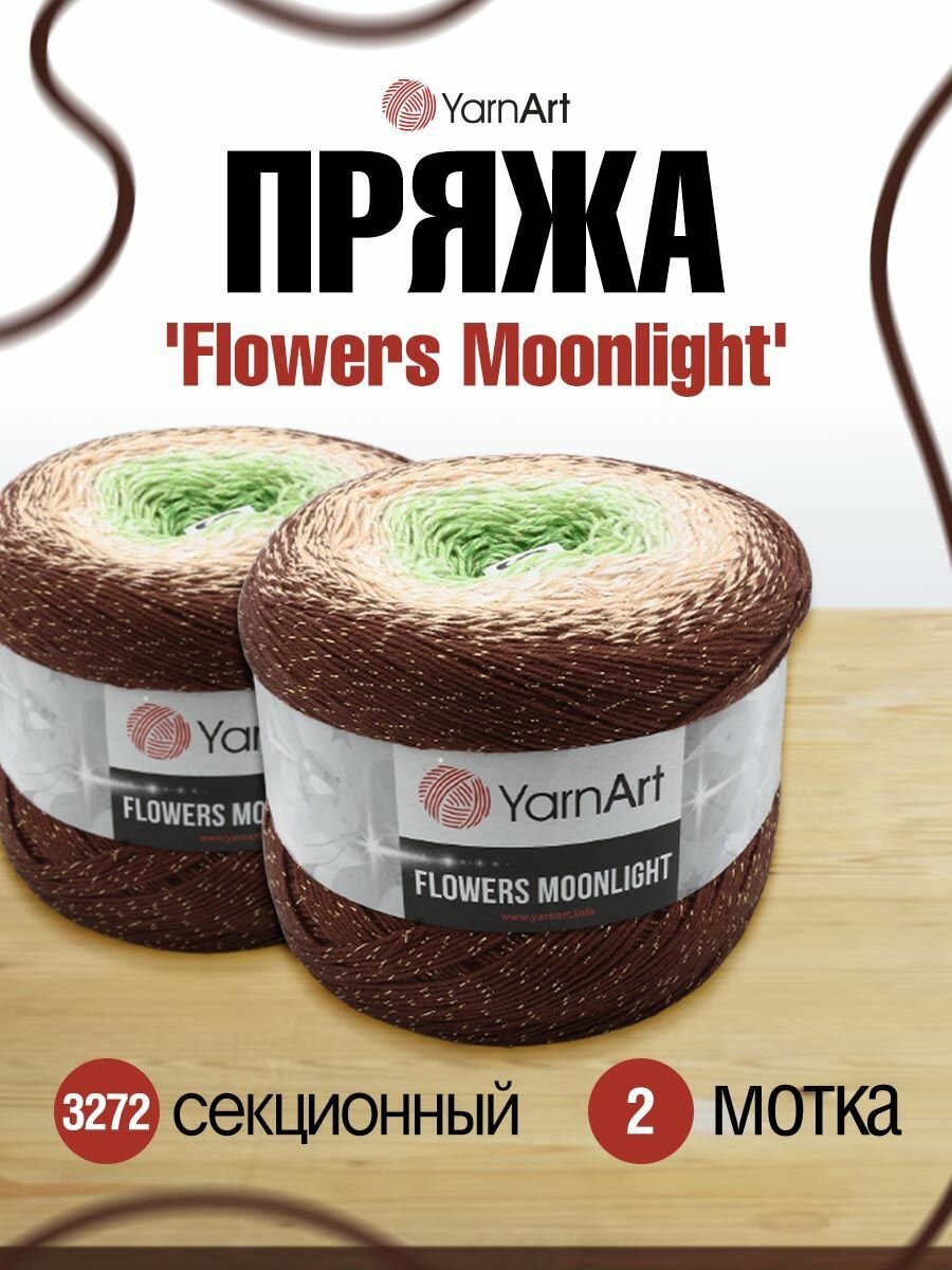 Пряжа YarnArt Flowers Moonlight коричневый-бежевый-медовый (3284), 53%хлопок/43%акрил/4%металлик, 1000м, 260г, 2шт