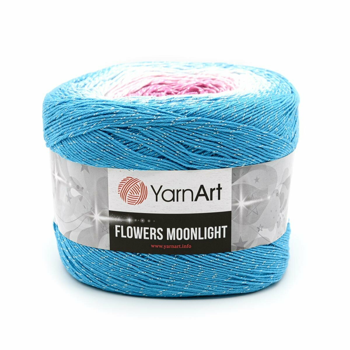Пряжа YarnArt Flowers Moonlight бирюза-белый-розовый-цикламен (3294), 53%хлопок/43%акрил/4%металлик, 1000м, 260г, 5шт