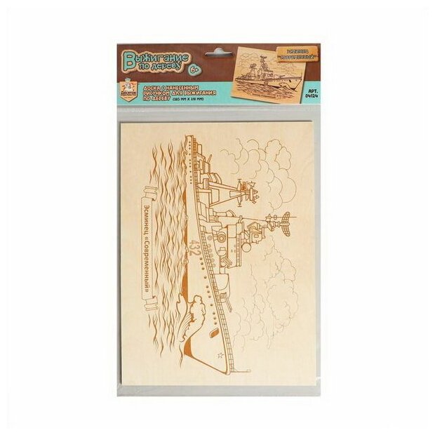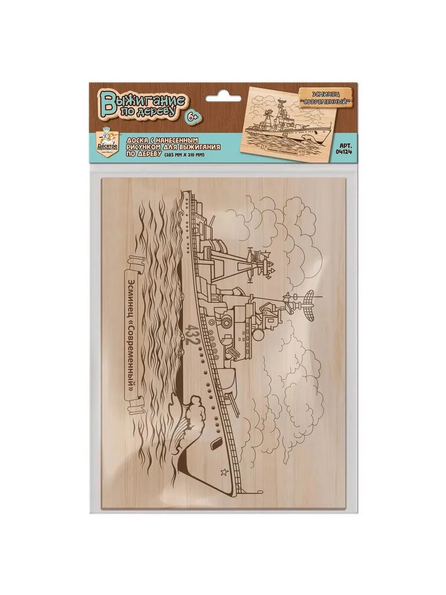 Выжигание По Дереву Доска с нанесенным рисунком. Эсминец "Современный" (28,5*21см, в пакете, от 6 лет) 04124, (ООО "Десятое королевство")