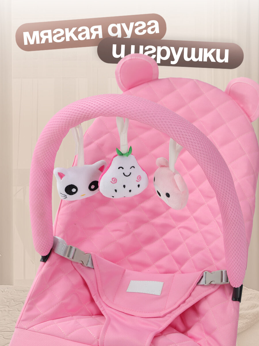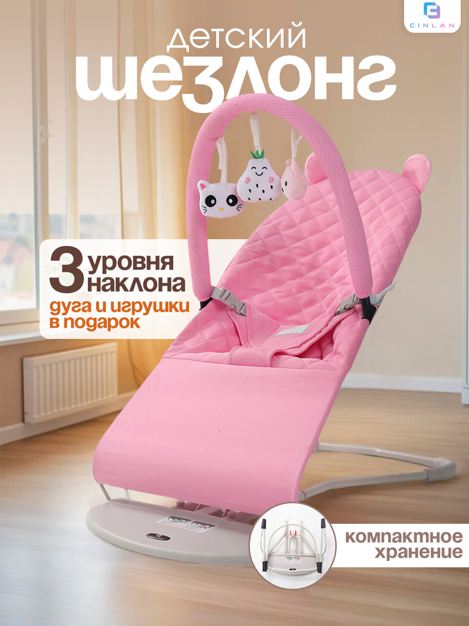 Купить Детский складной шезлонг CINLANKIDS для новорожденных кресло качалка для малышей от 0 с игрушкой дугой, розовый