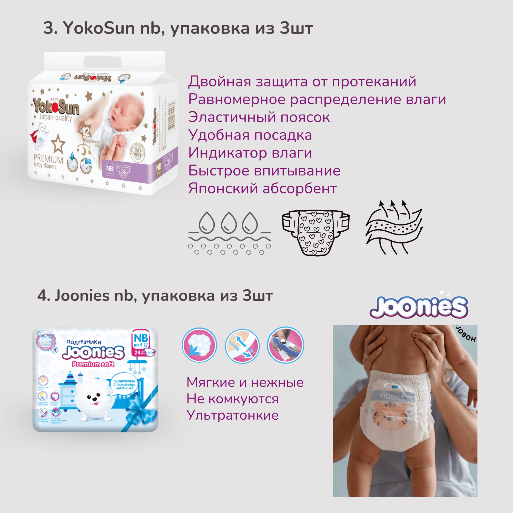 Ниже Вы можете прочитать отзывы на Набор подгузников для новорожденных, пробники, NB, унисекс, 24 шт., ознакомится с подробными характеристиками, посмотреть интересные обзоры и фотографии на Набор подгузников для новорожденных, пробники, NB, унисекс, 24 шт..
