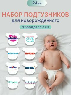 Набор пробников подгузников для новорожденных , 8 брендов по 3 шт