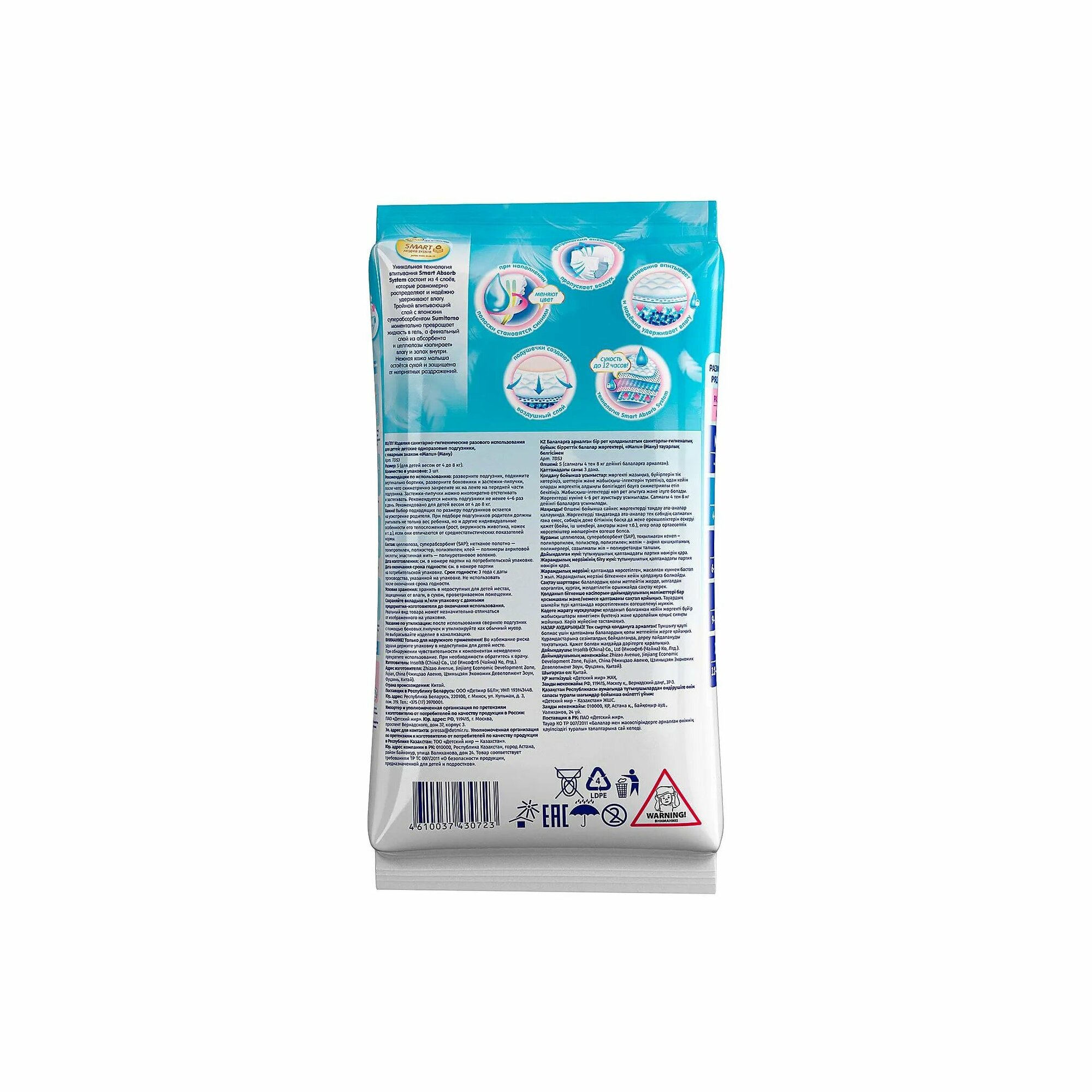 Подгузники MANU S 4-8кг 3шт интересное: