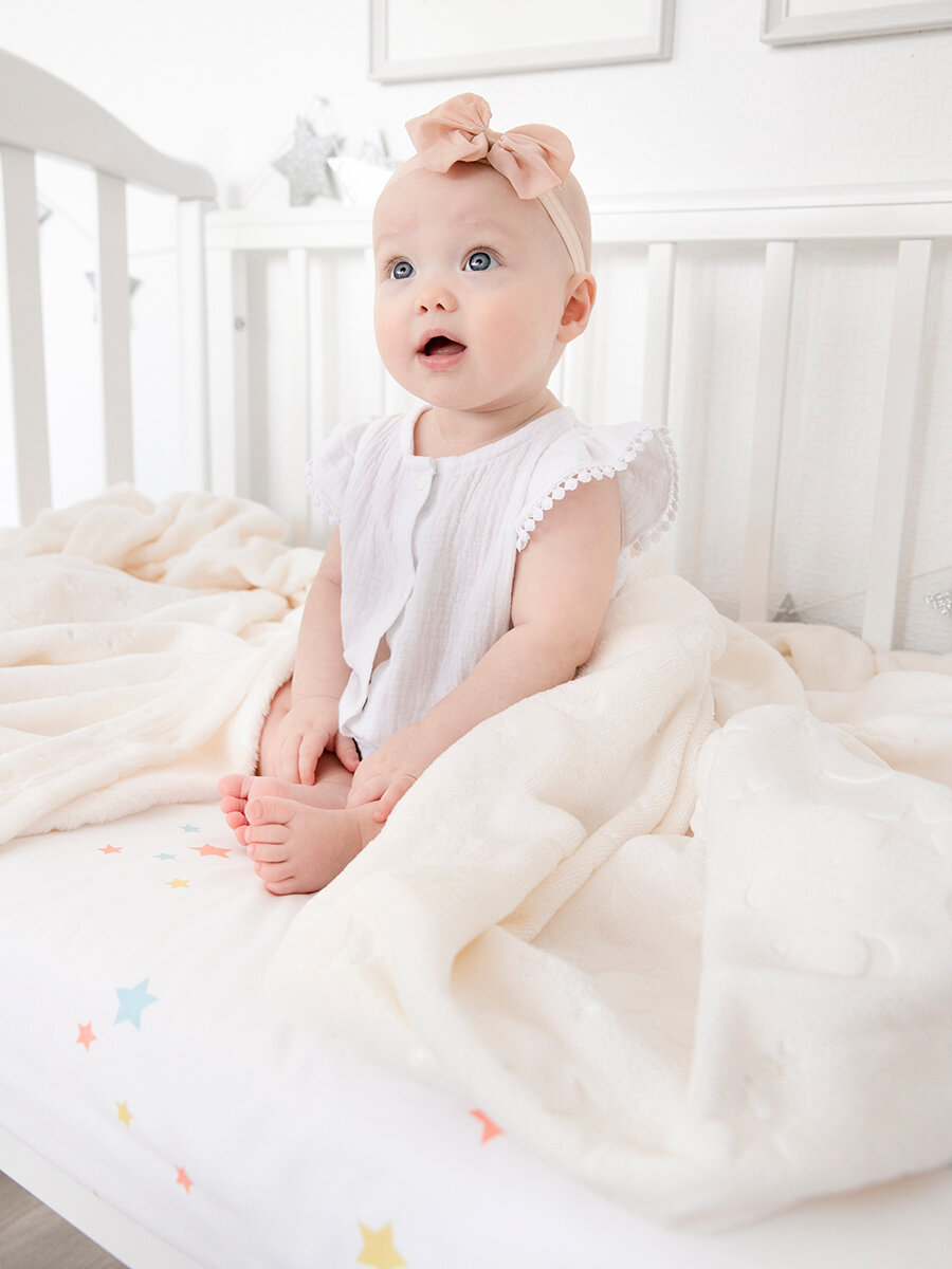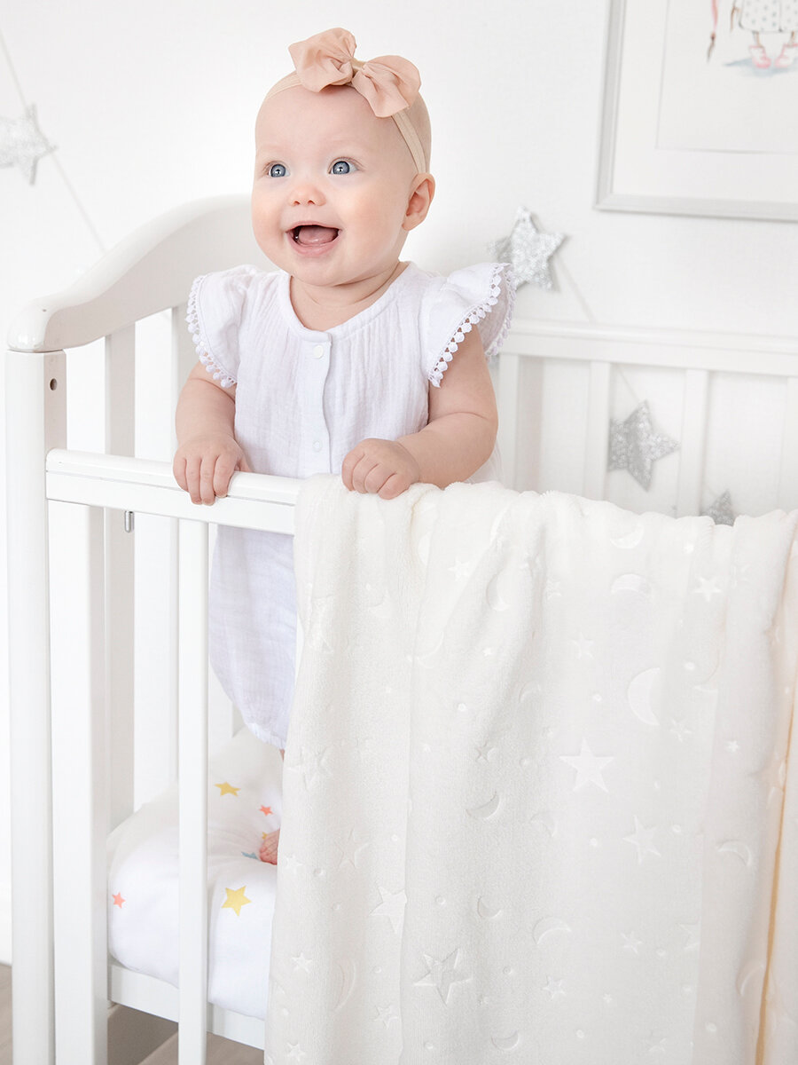 СохранитьПлед для новорожденного 100х140 пушистый детский в кроватку коляску, Baby Nice, "Луны", молочный, белый интересное: