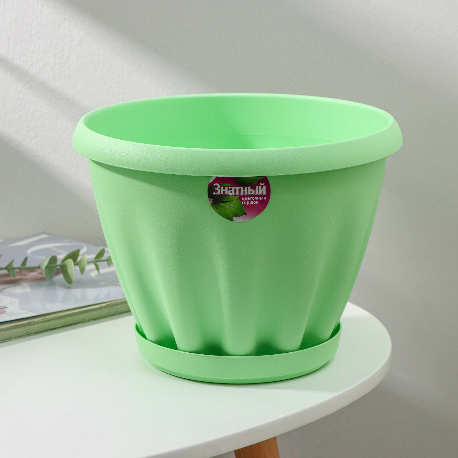 Горшок для цветов с поддоном "Знатный", 3.9 л, d=22.5 см, цвет зелёный