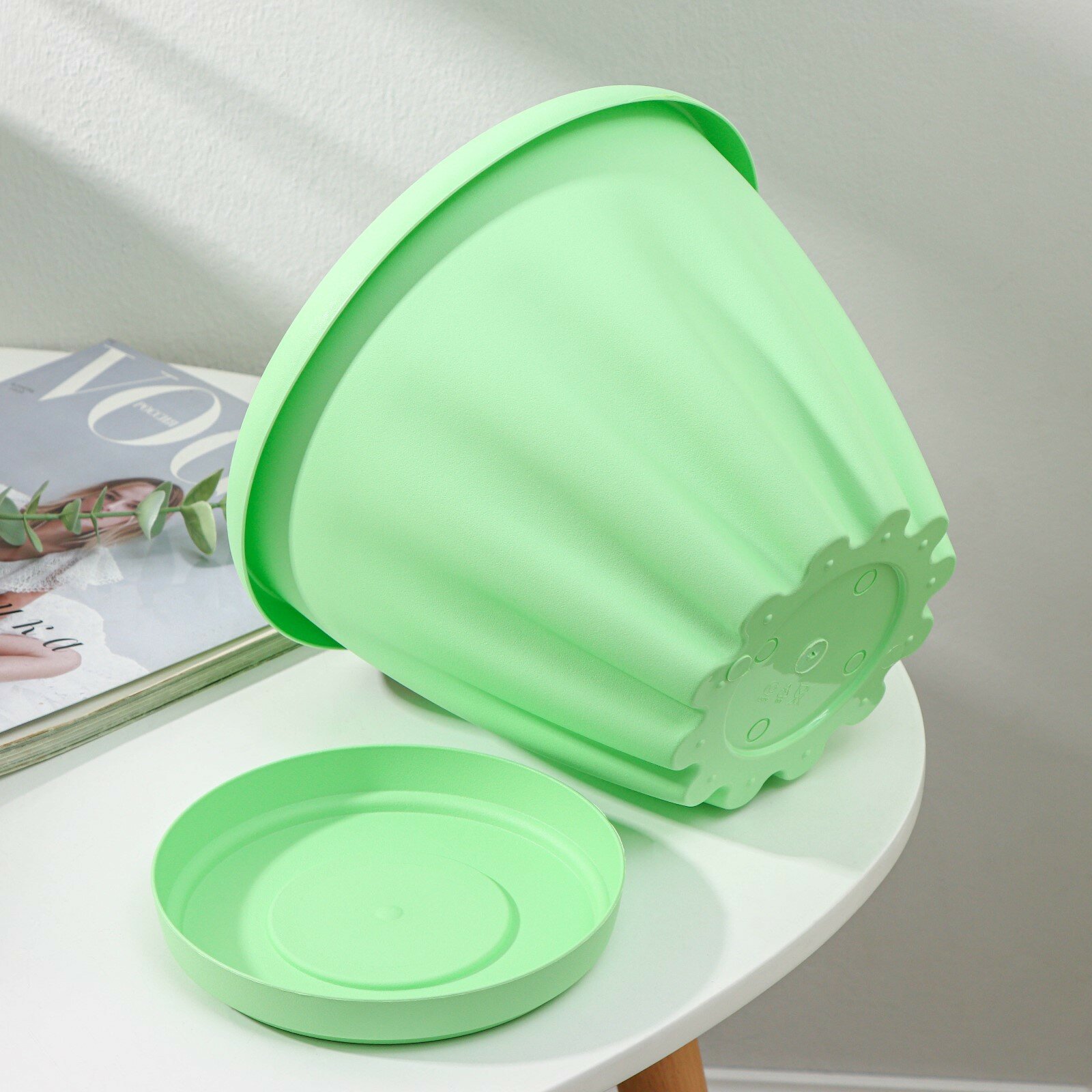 Горшок цветочный "Листья" с поддоном 5л, керамика, настольный декоративный горшок для цветов