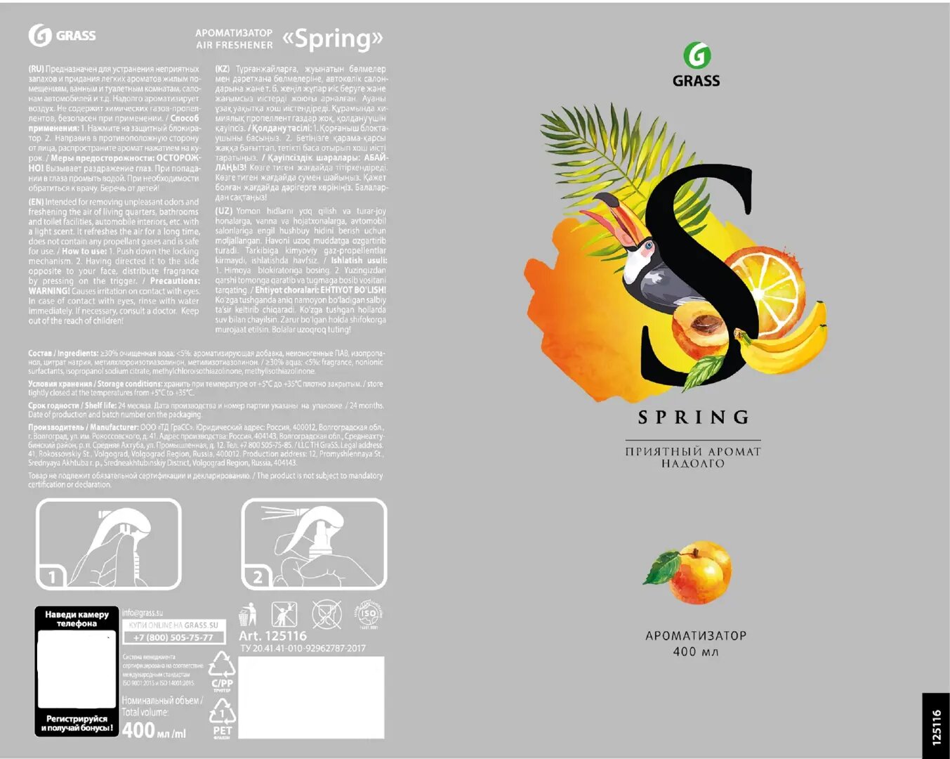Grass Жидкий освежитель воздуха Spring, 400 мл
