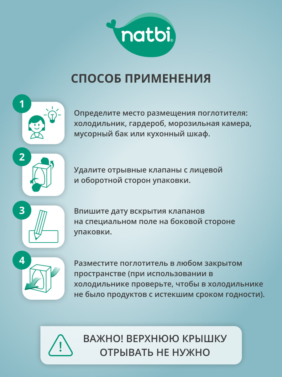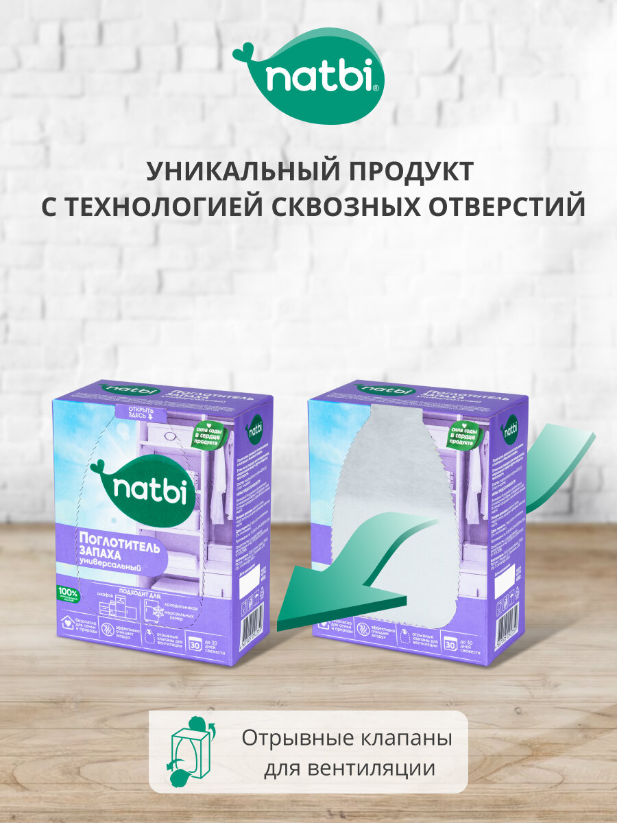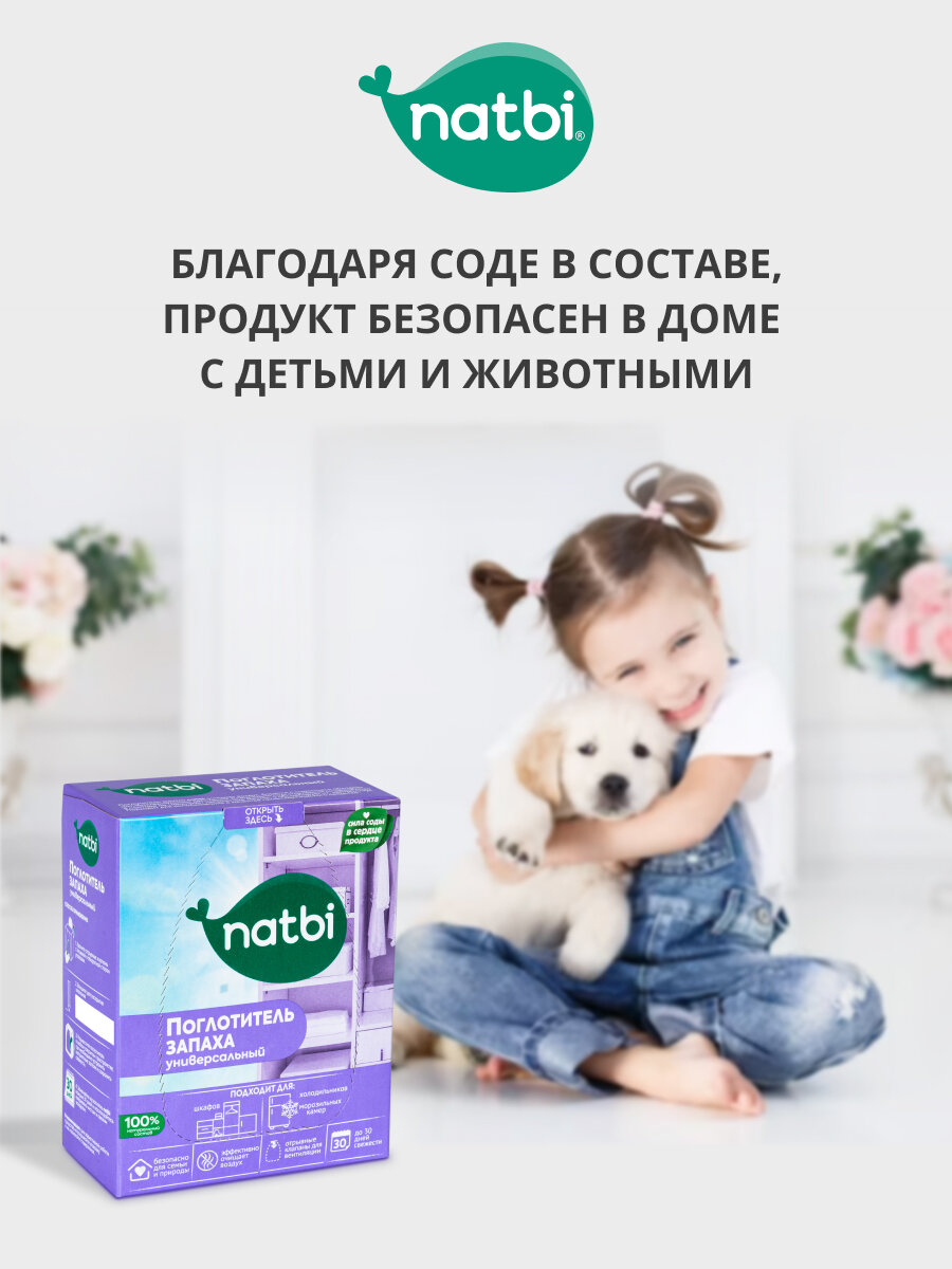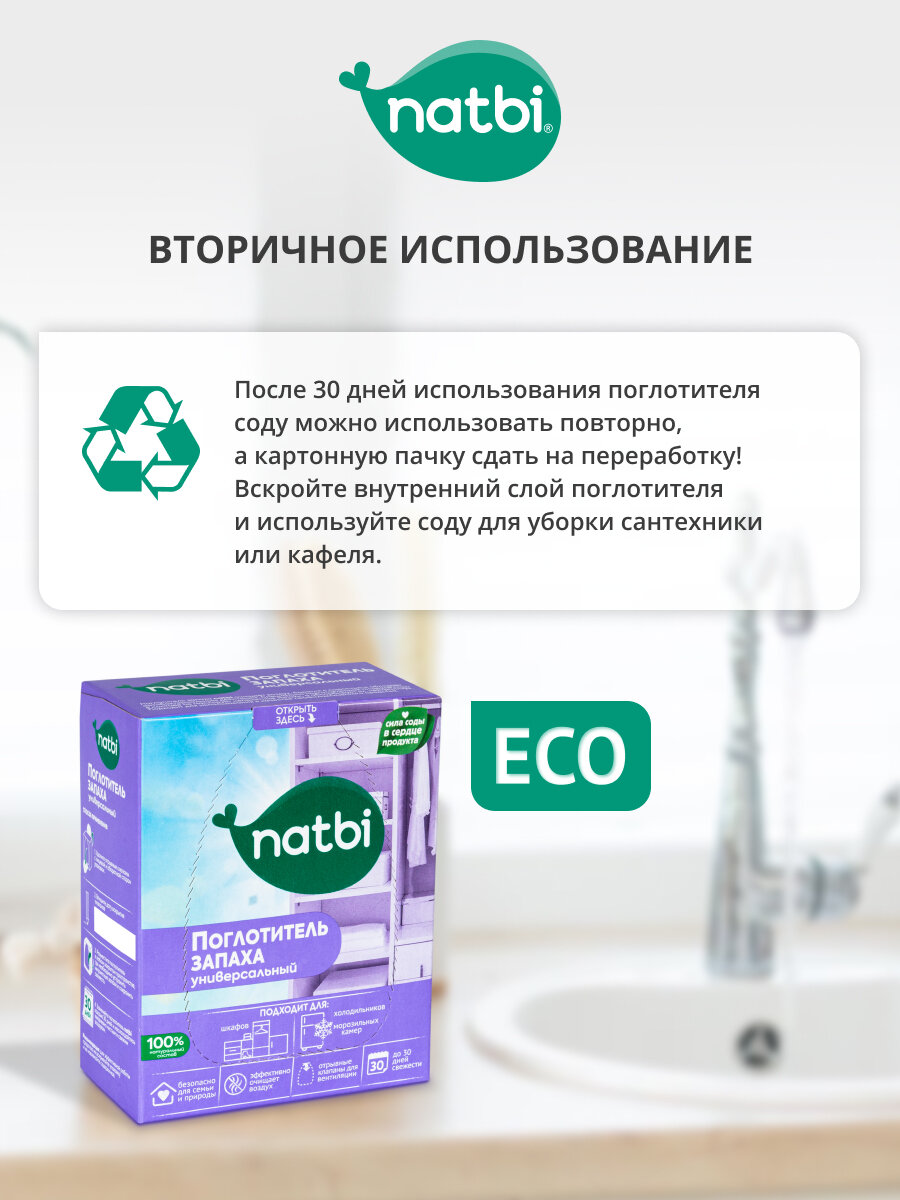Natbi Поглотитель запаха универсальный для шкафа и холодильника на основе соды экологичный. 400 гр. интересное: