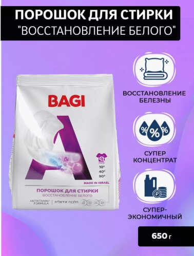 Стиральный порошок Bagi Восстановление белого, концентрированный 650г, пакет интересное: