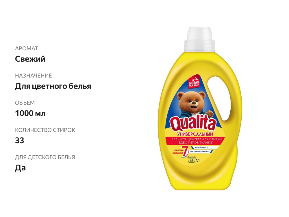 Ниже Вы можете прочитать отзывы на Средство для стирки белья универсальное Qualita гель флакон 1 л, ознакомится с подробными характеристиками, посмотреть интересные обзоры и фотографии на Средство для стирки белья универсальное Qualita гель флакон 1 л.