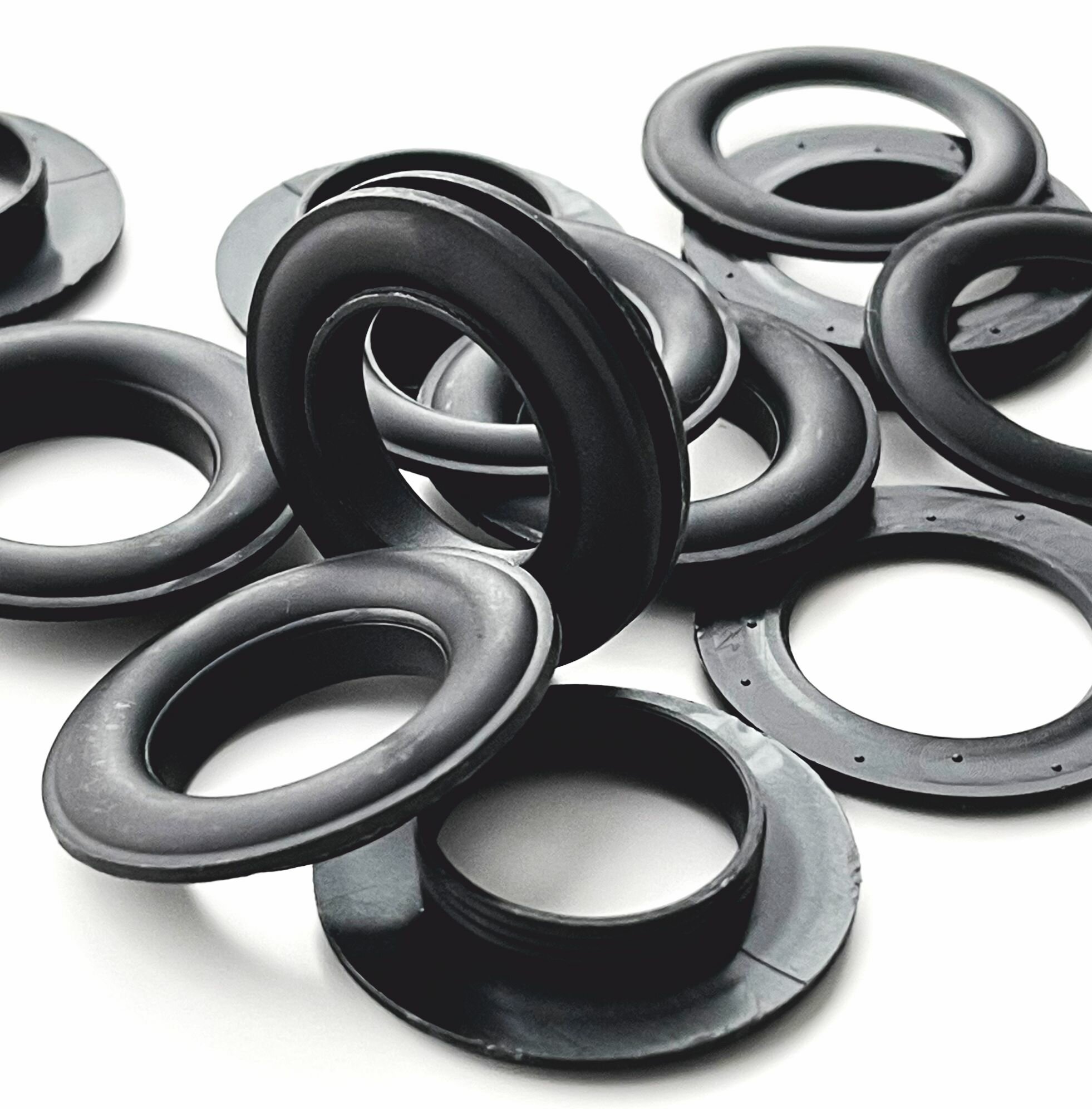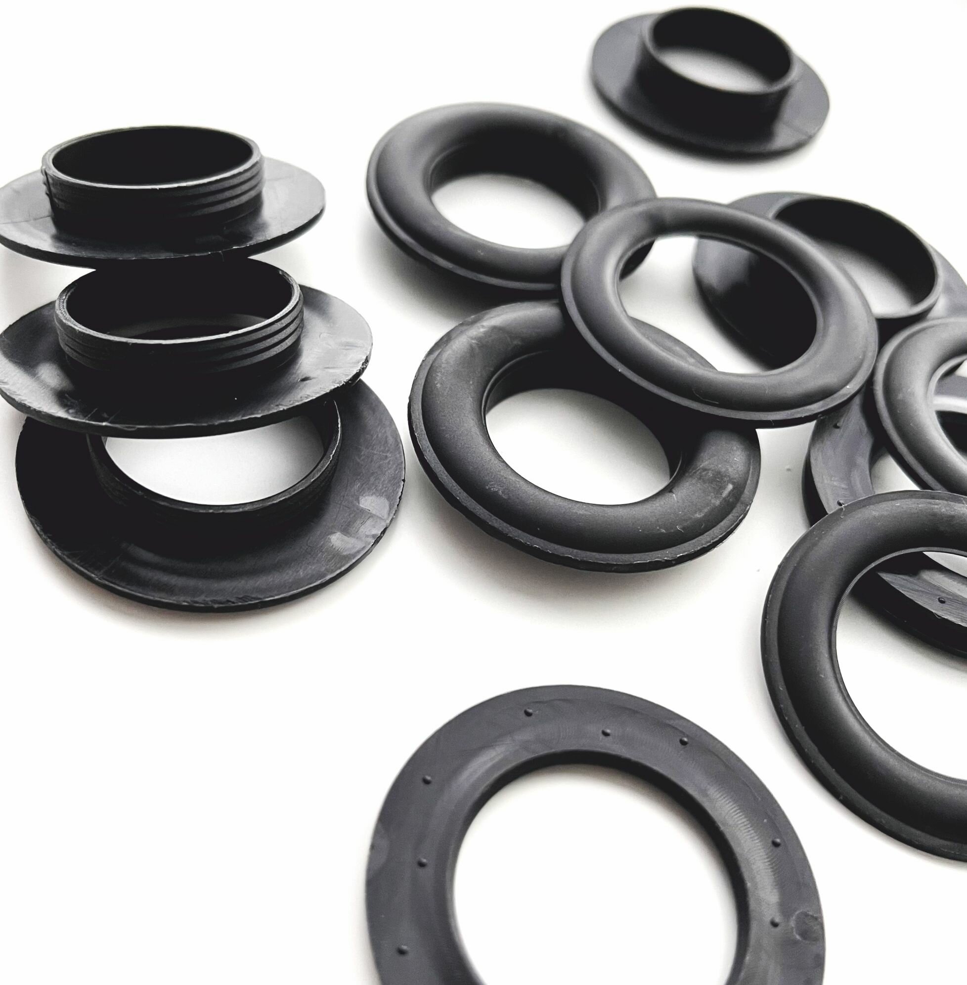 Люверсы пластиковые большие, чёрные 23 мм на защелках