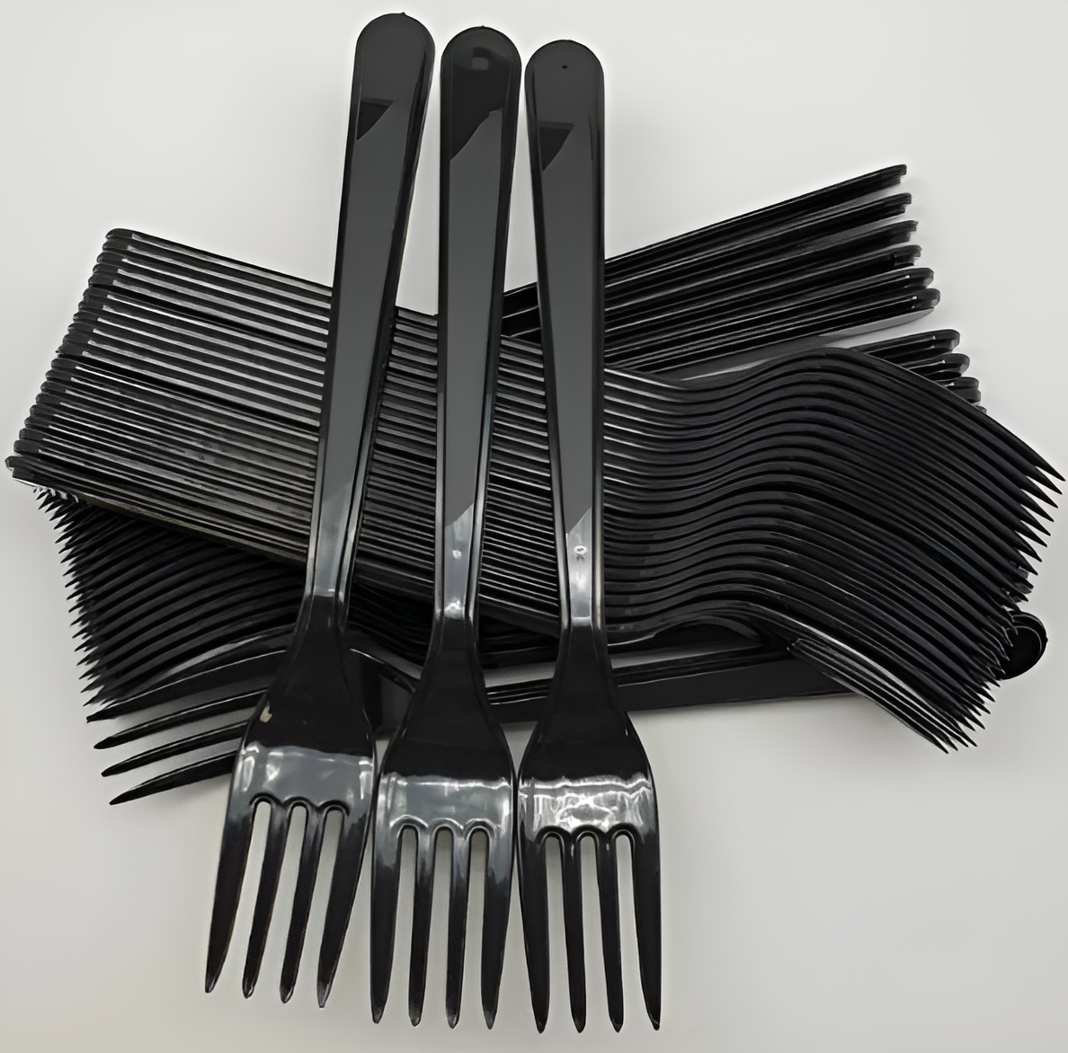 Вилка 18 см пластиковая чёрная 100 шт, набор одноразовых вилок интересное: