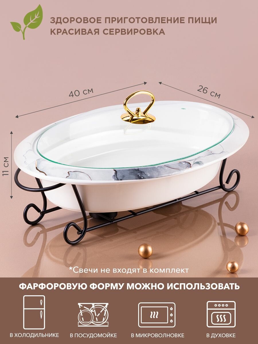 Мармит Lefard "herbal" со стеклянной крышкой 33 см., 1600 мл на металл. подставке