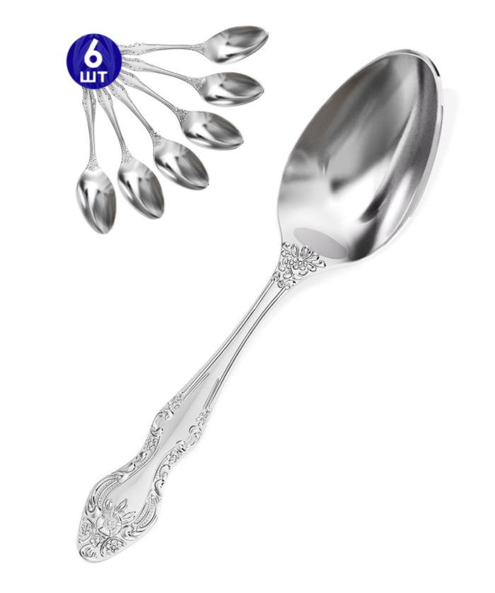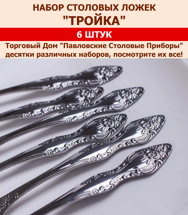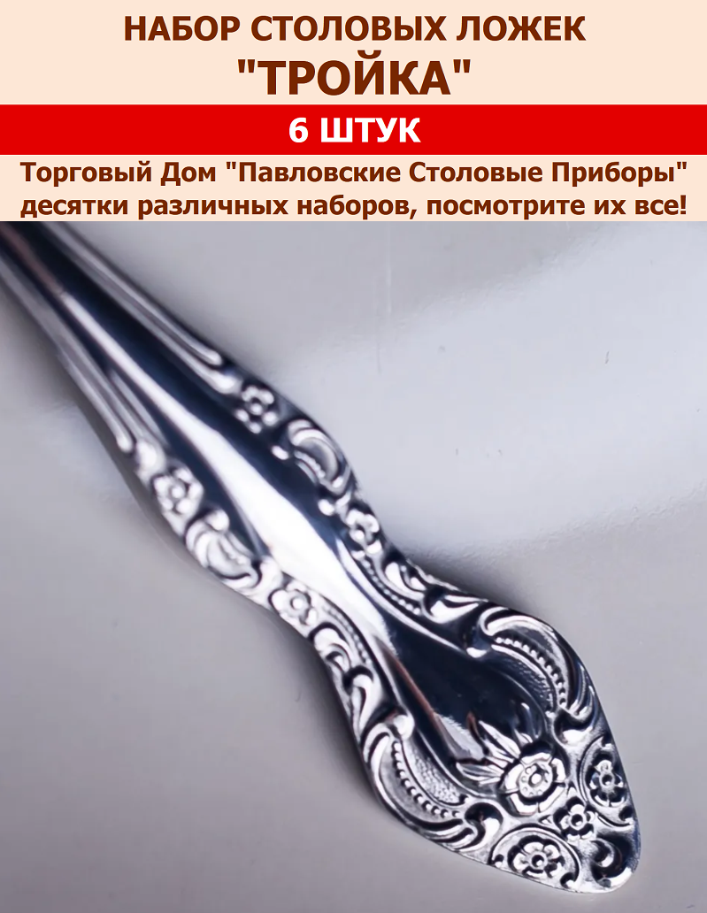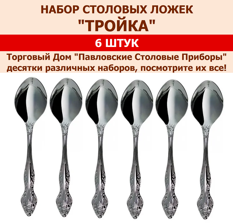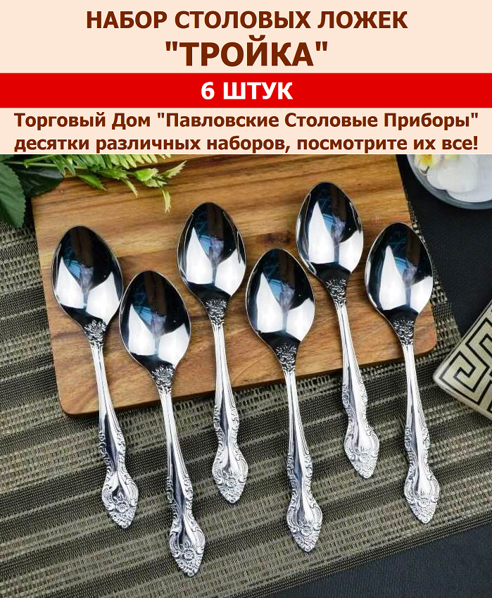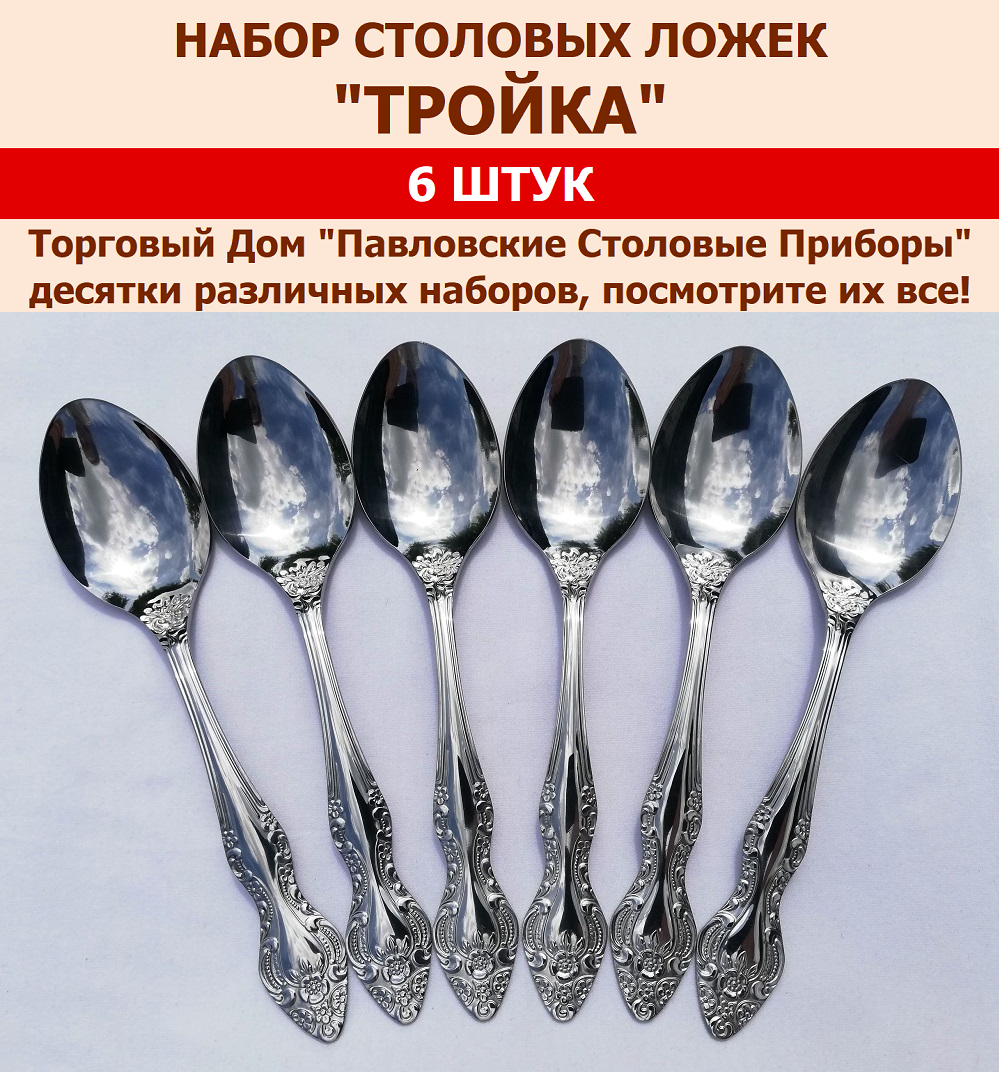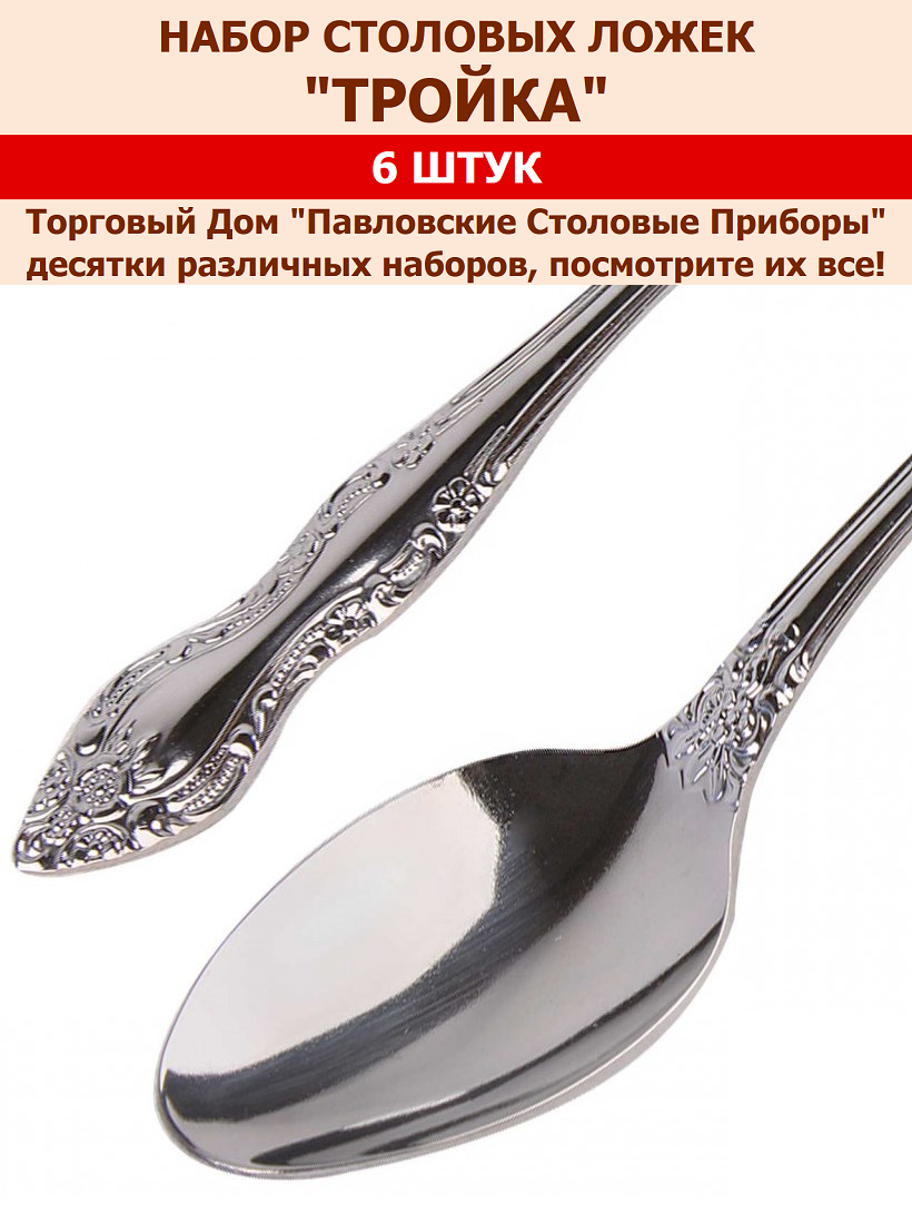 Купить Ложка столовая "Тройка", 6 штук, нержавеющая сталь. Павлово, Россия.