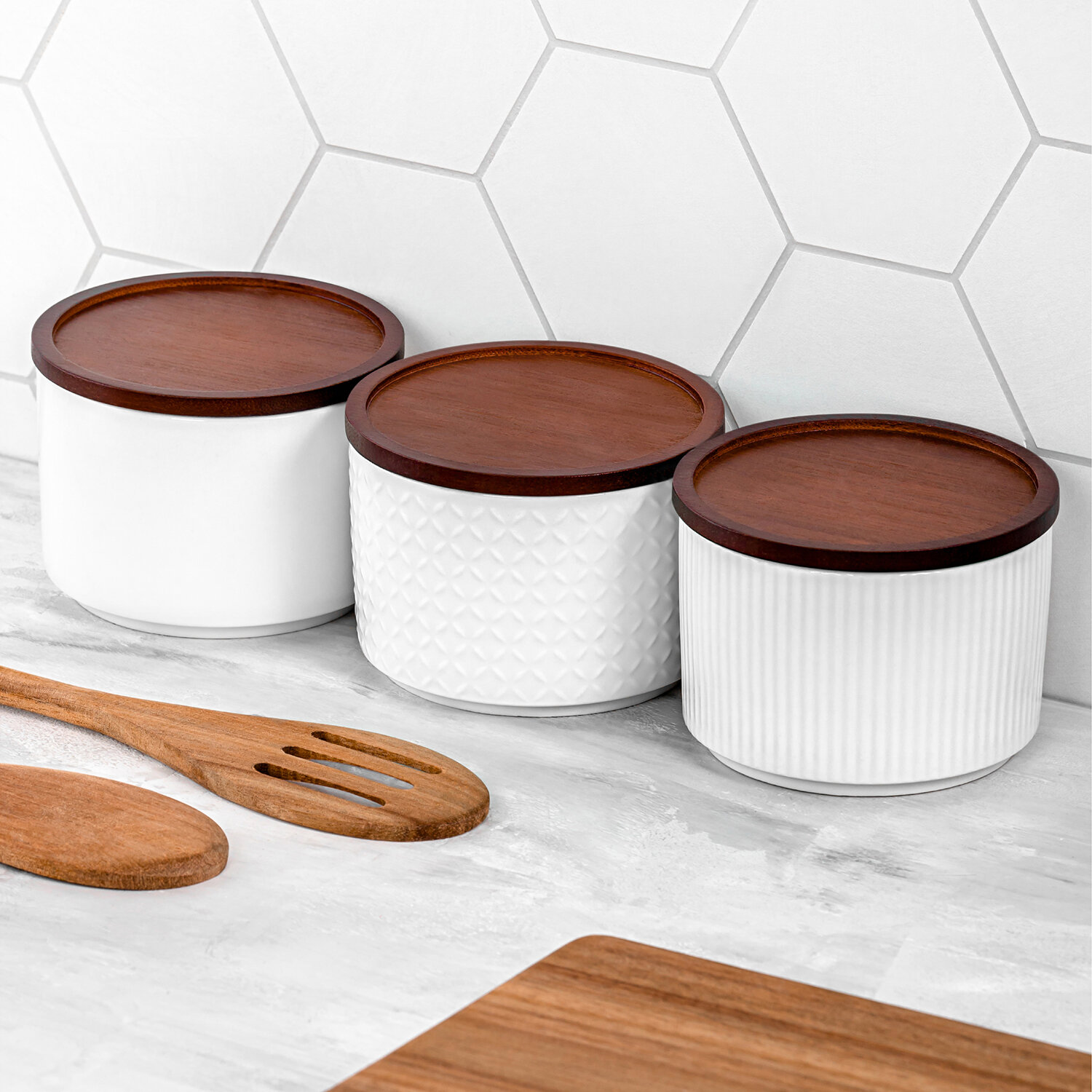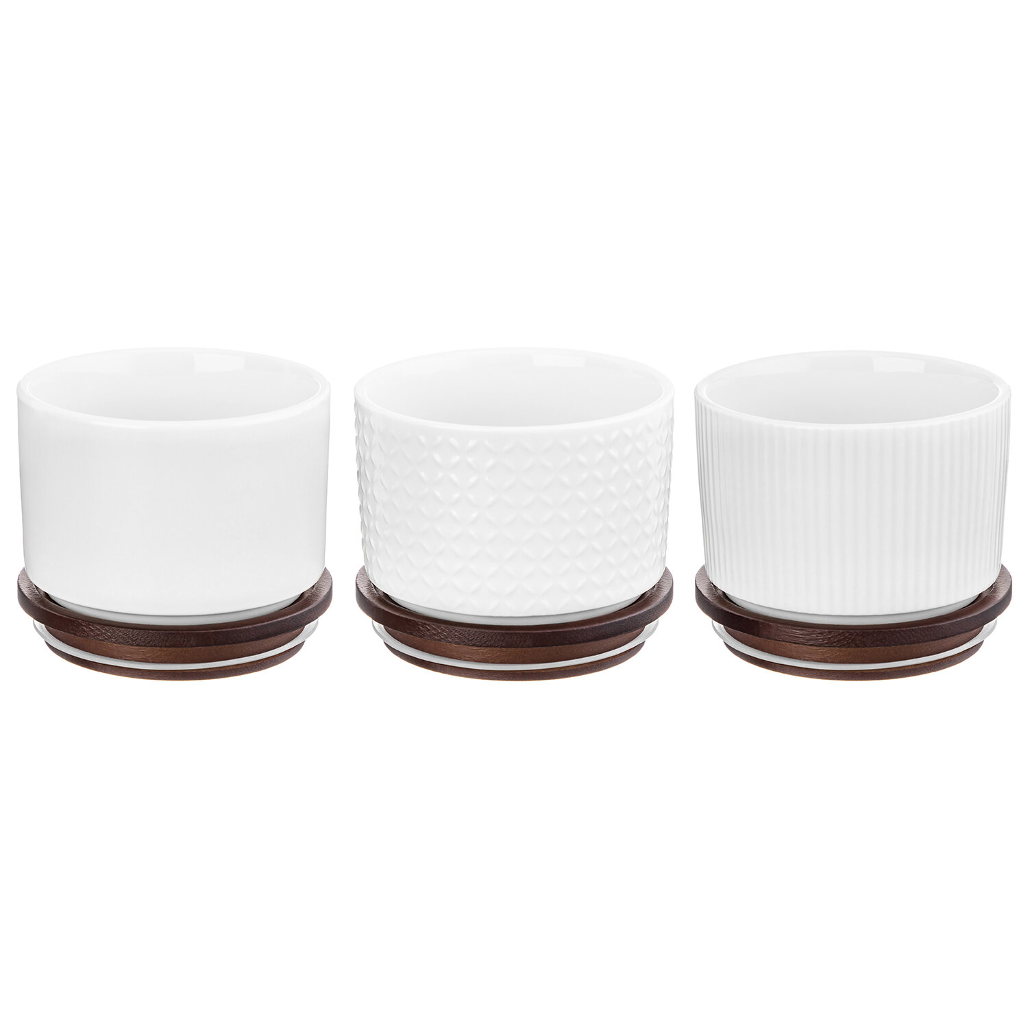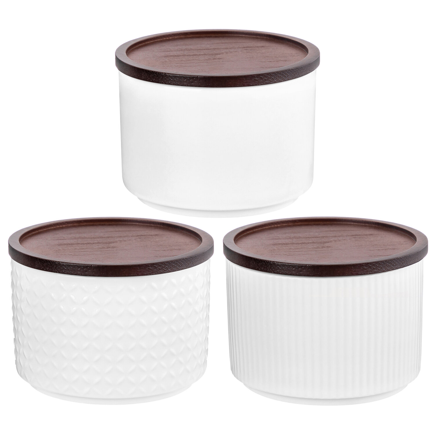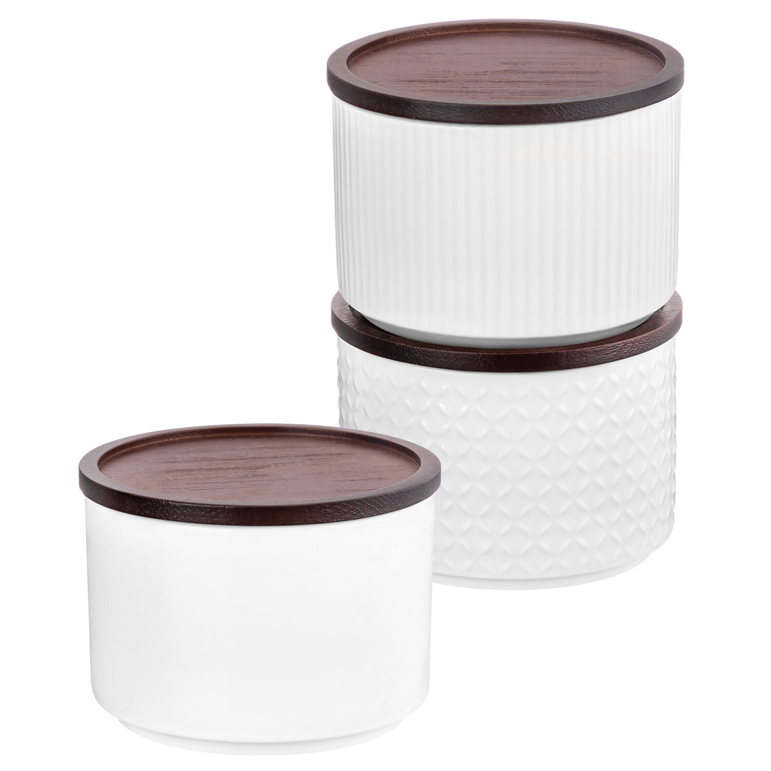 Купить Банка для хранения, форма для запекания 250 мл 3 шт Elan Gallery Микс, Колоранс, белый, с деревянной крышкой-подставкой