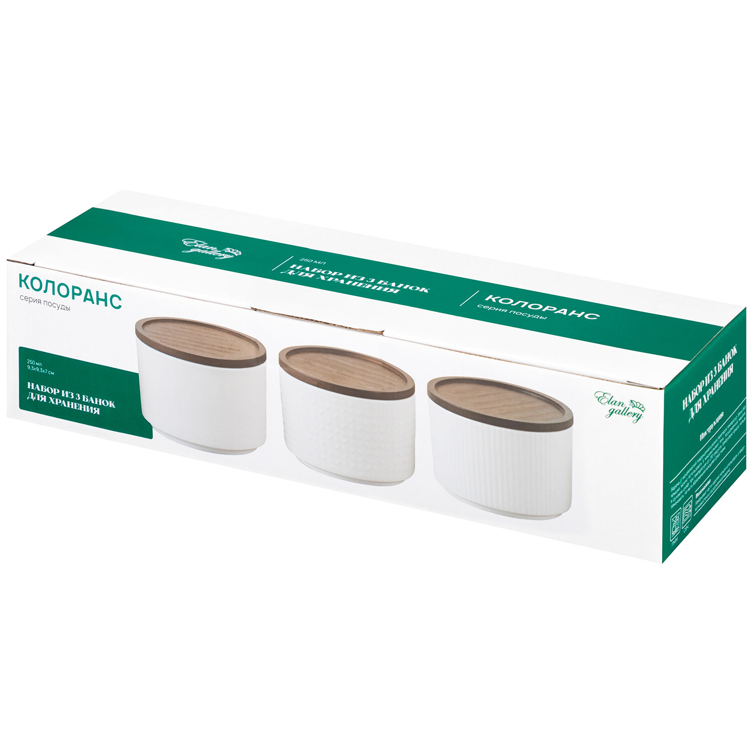 Банка для хранения, форма для запекания 250 мл 3 шт Elan Gallery Микс, Колоранс, белый, с деревянной крышкой-подставкой интересное: