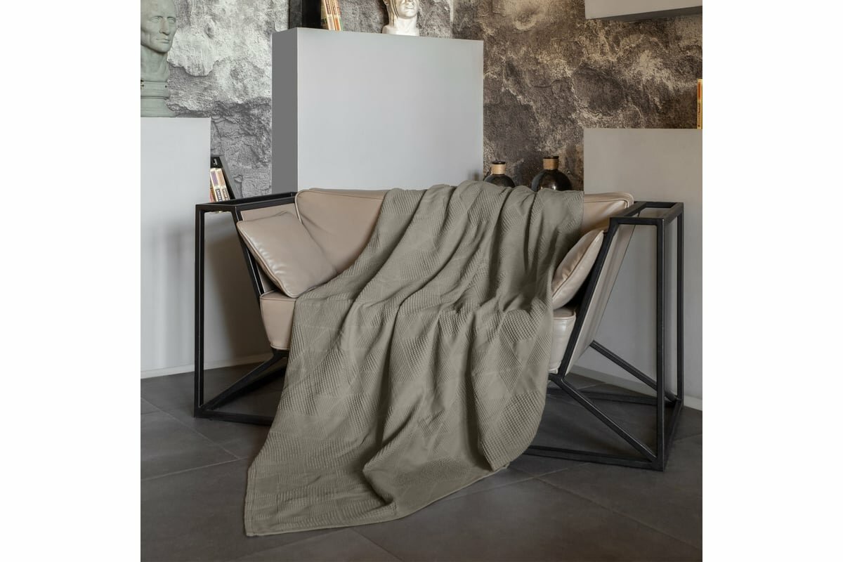 Купить Жаккардовый плед Verossa оттенок "Серо-бежевый" 180х190 из 100% хлопка, плотность 260г/м2