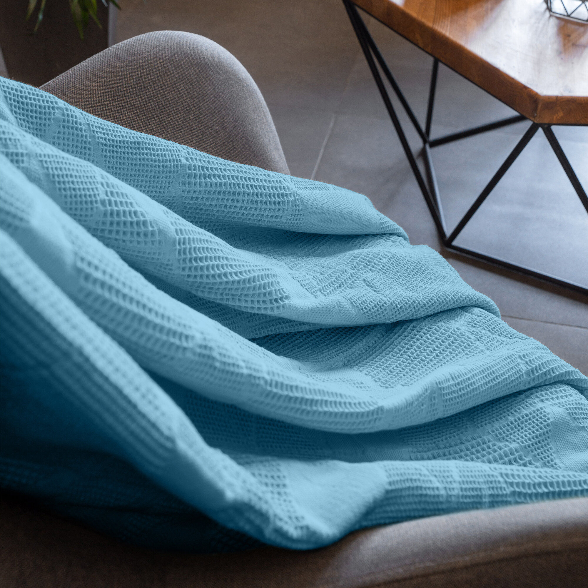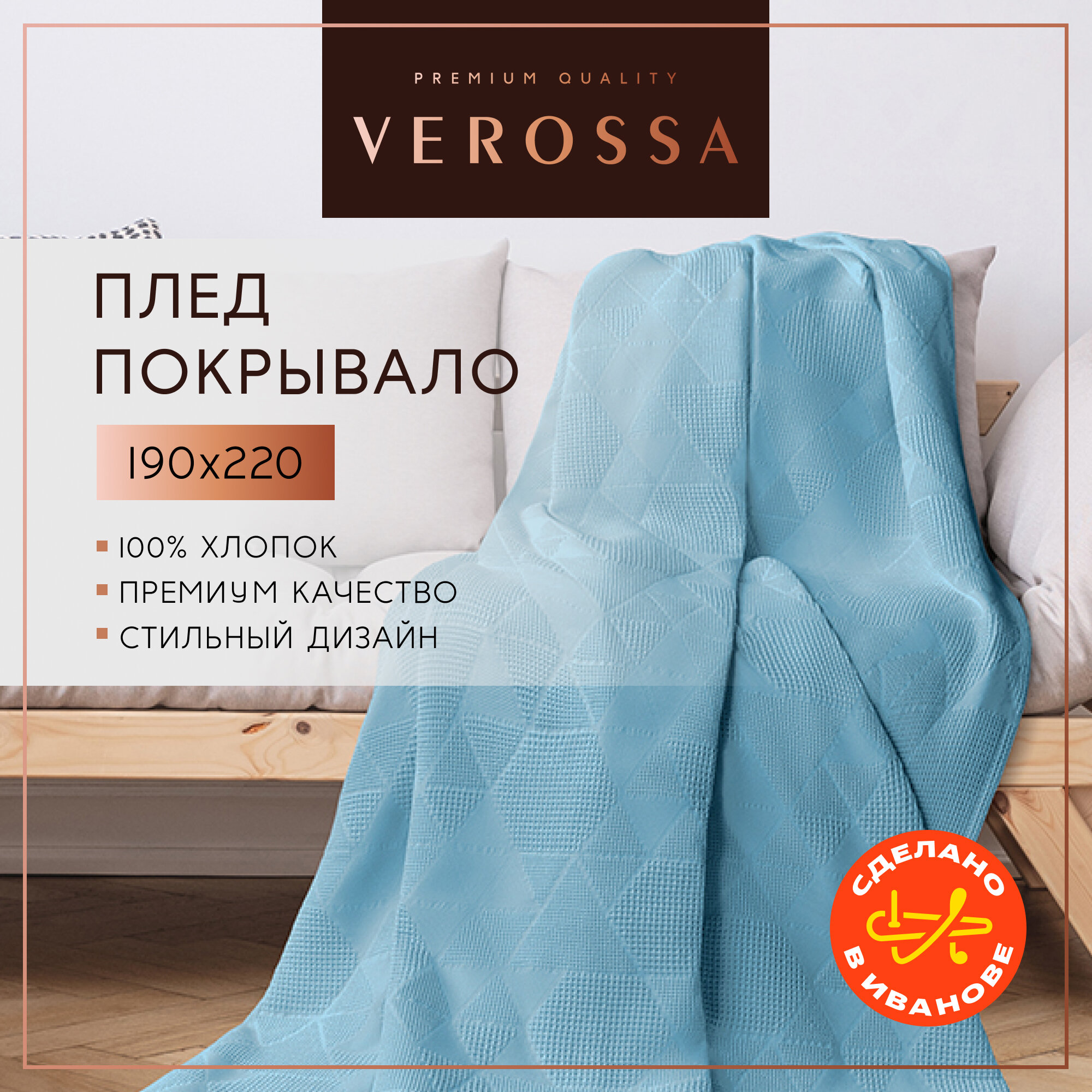 Купить Плед Verossa жаккардовый, 190 х 220 см, голубой, чайная роза