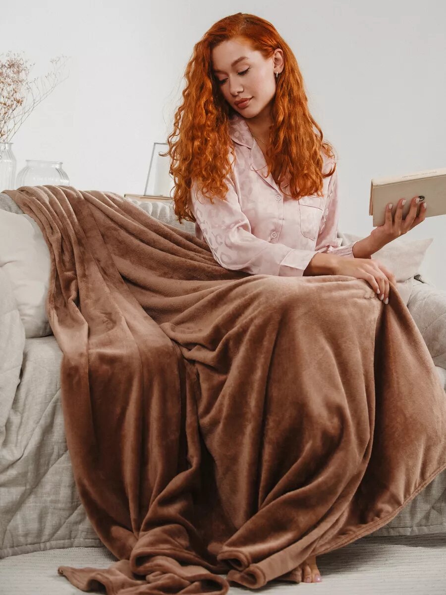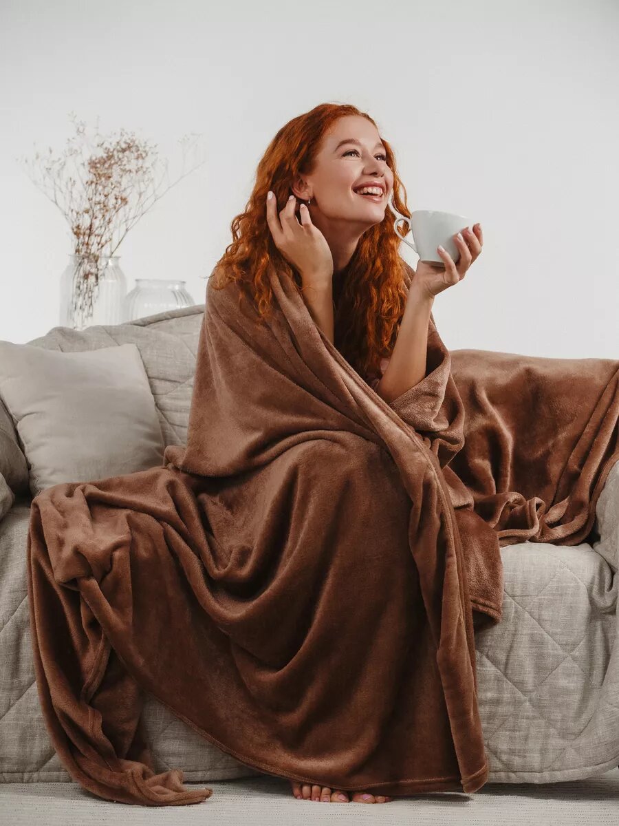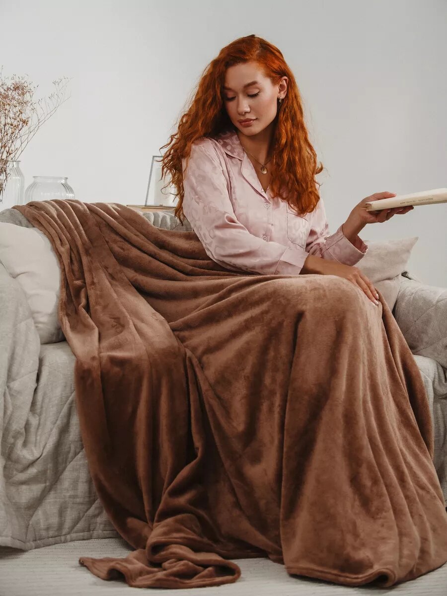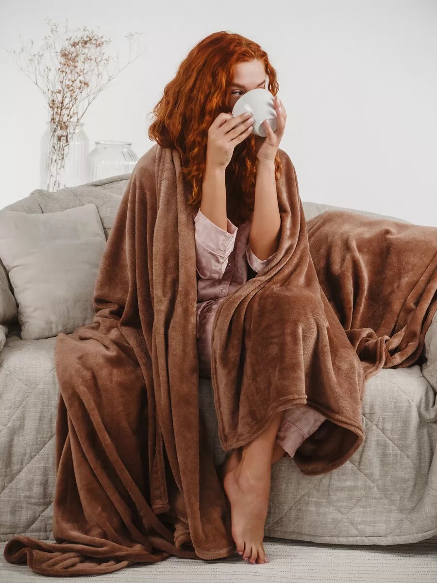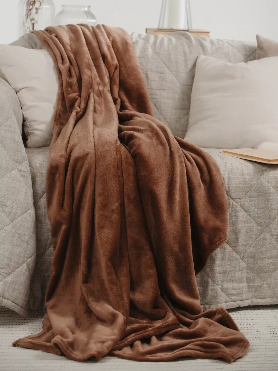 Плед LOVEBERRY из велсофта 150х200 см плюшевый на диван однотонный, какао