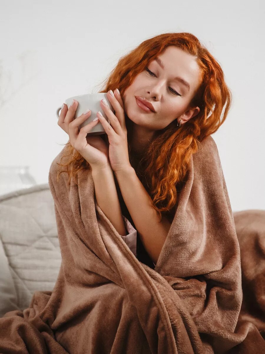 Плед 150х200 LOVEBERRY из велсофта плюшевый на диван однотонный, какао, подарок маме