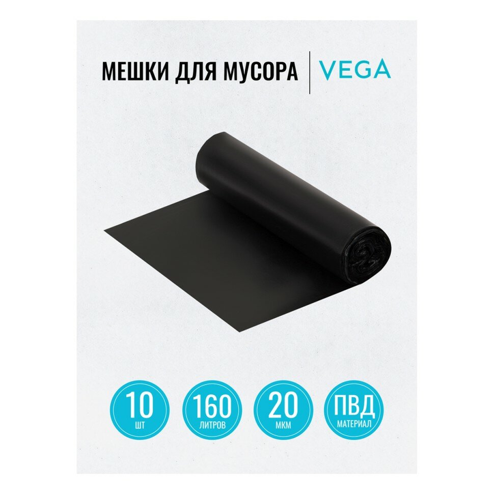 Купить Мешки для мусора 160л Vega ПВД, 80*106см, 20мкм, 10шт., черные, в рулоне (арт. 344029)