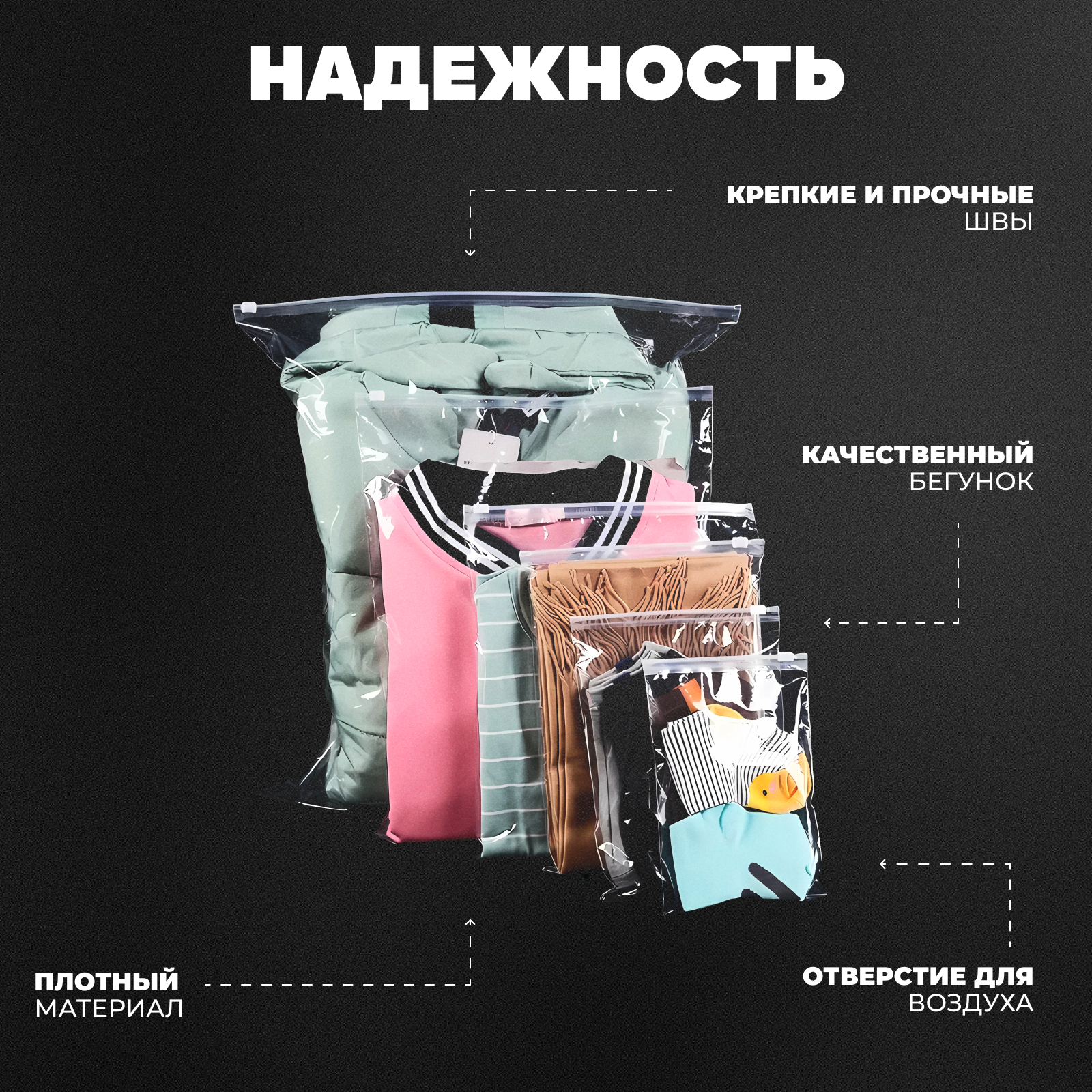 Прозрачные пакеты с бегунком для вещей и путешествий, 30х40см, 10 штук