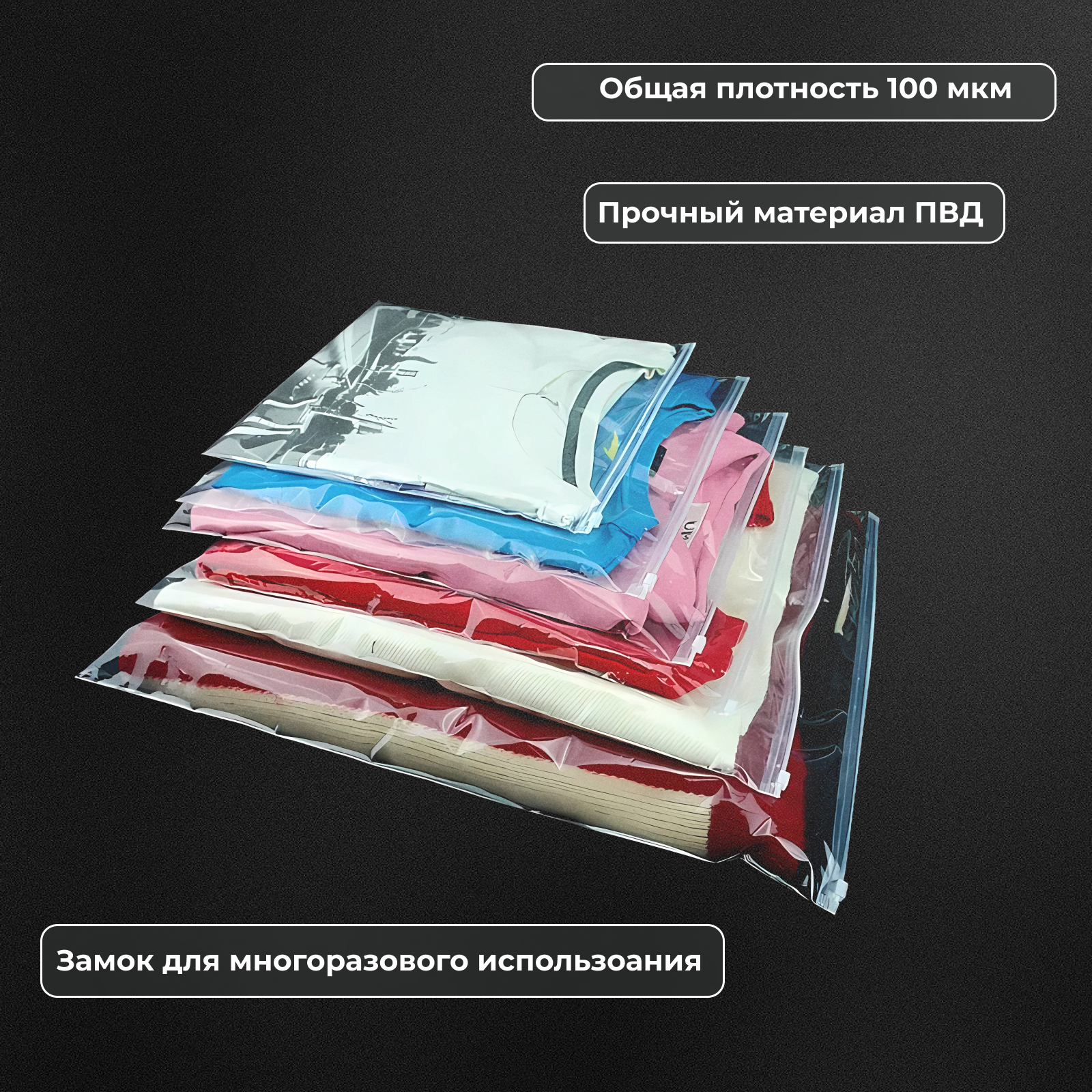 Прозрачные пакеты с бегунком для вещей и путешествий, 30х40см, 10 штук