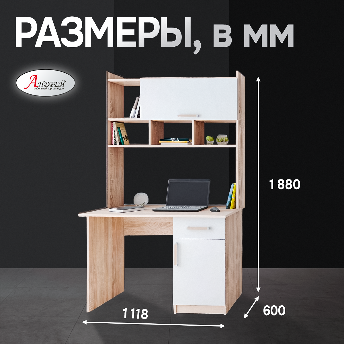 Стол компьютерный «Квартет-10», дуб сонома/белый (1118х600х1880)