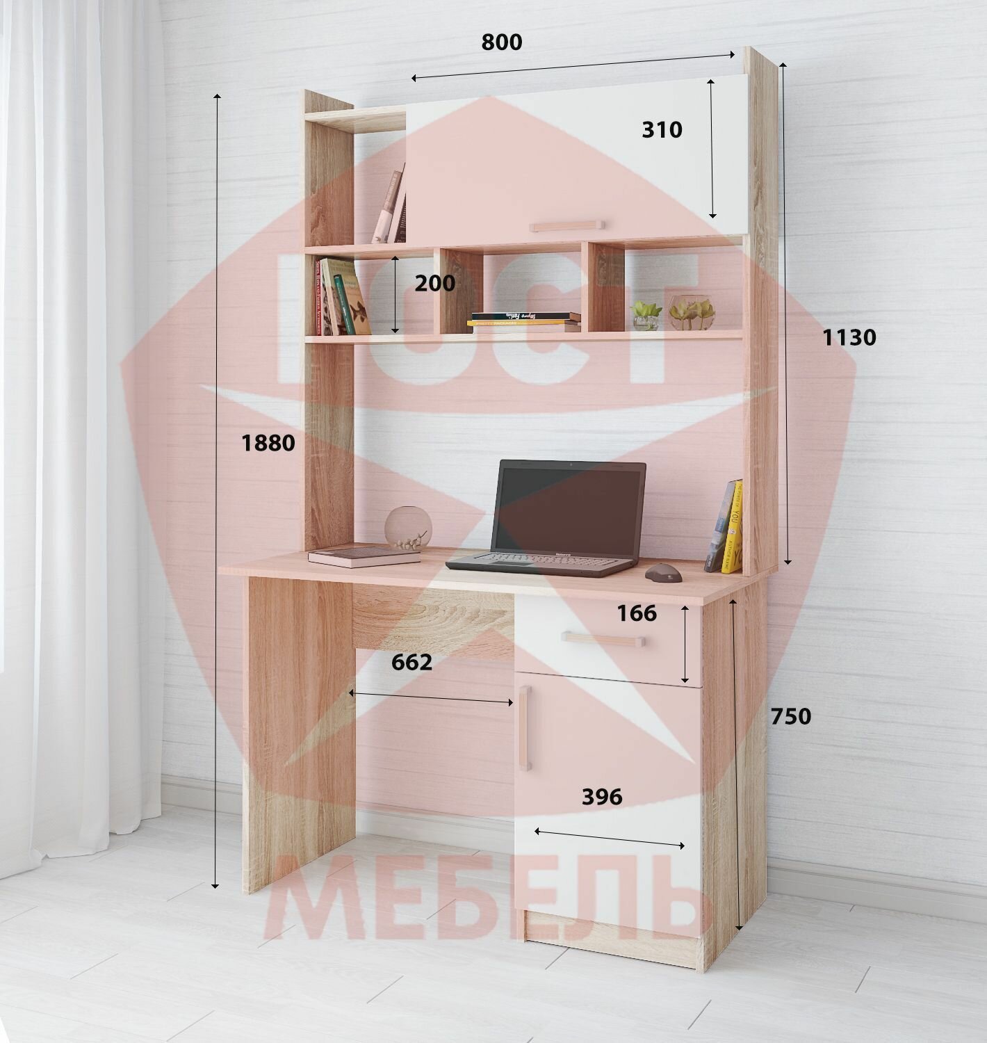 Стол компьютерный «Квартет-10», дуб сонома/белый (1118х600х1880)
