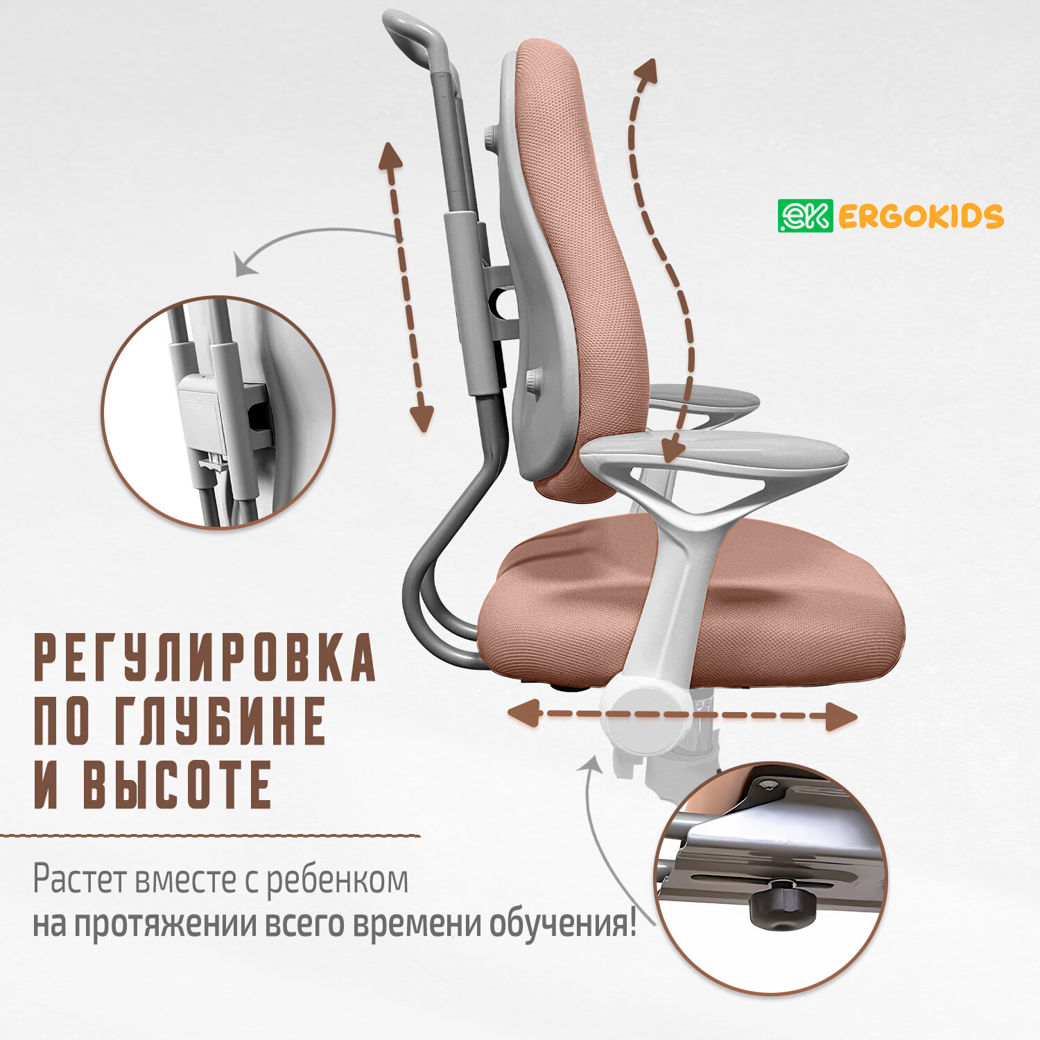 Купить Растущее детское кресло для дома ErgoKids Y-507 BR Armrests (арт.Y-507 ARM / BR) с подлокотниками для обычных и растущих парт и чехлом
