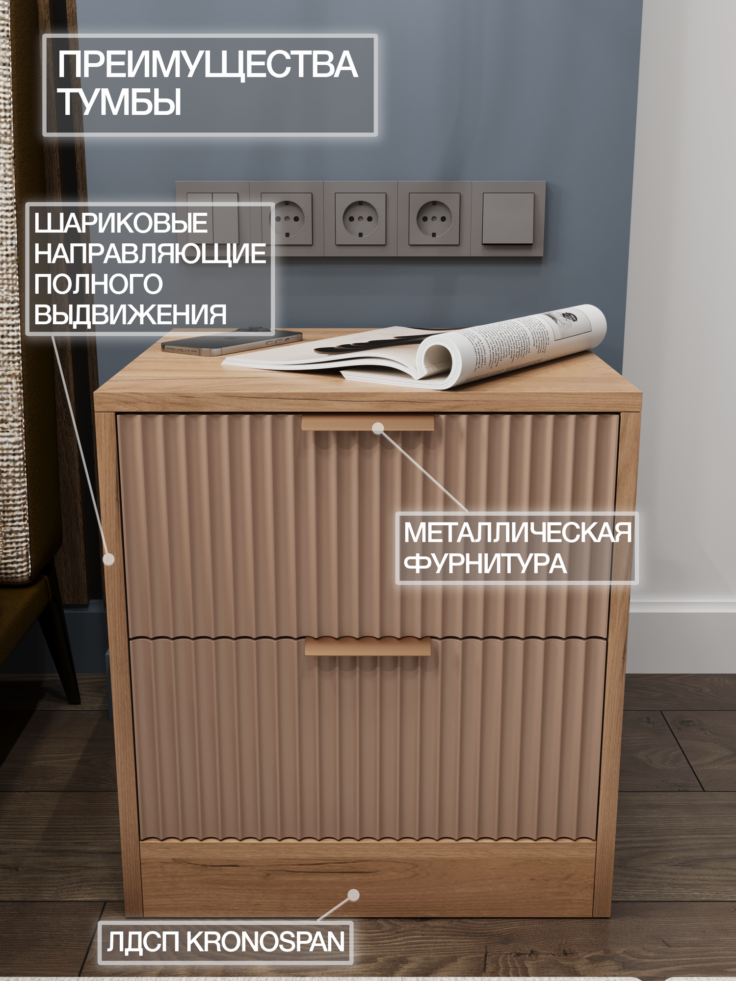 СохранитьПрикроватная тумба KOMODO ВОЛНА-1 дуб крафт золотой/моккачино, 43.6х40х45.7 интересное: