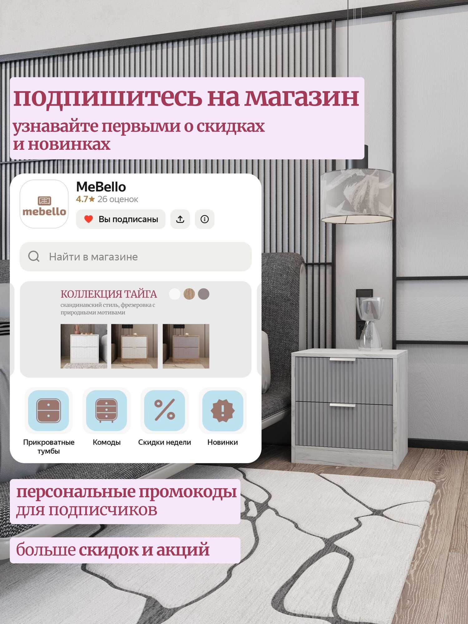 Прикроватная тумба KOMODO ВОЛНА-2, с фрезеровкой, белая/серая 43.6х40х45.7