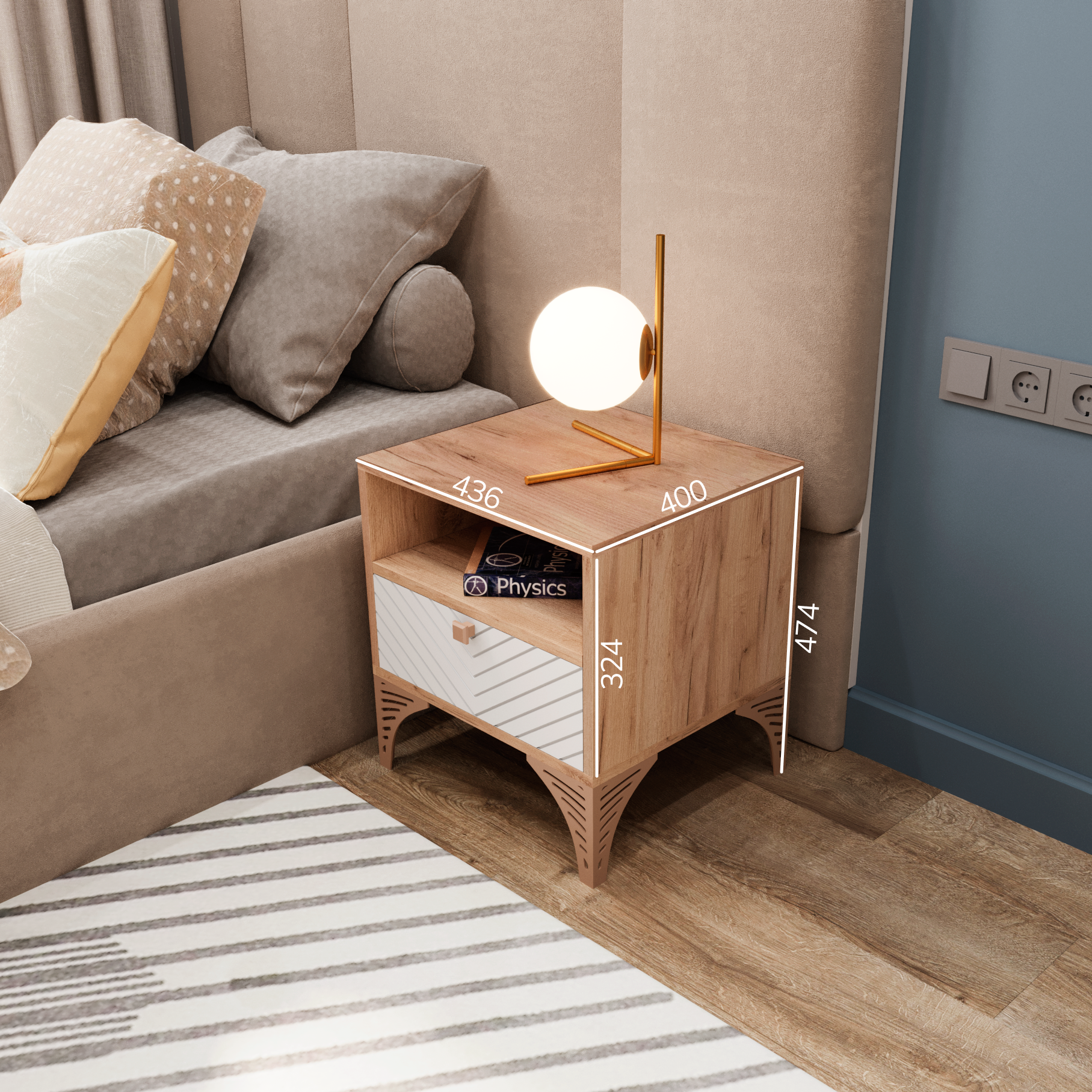 Тумба прикроватная KOMODO ВОЛНА-1 дуб крафт белый/серый, 43.6х40х45.7
