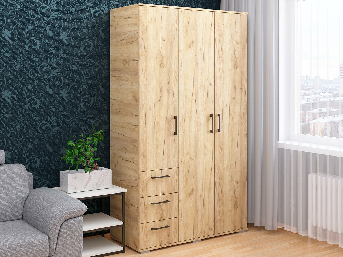 Шкаф МК "Пирамида" Шон-19 распашной, трехдверный, с 3-мя ящиками , цвет крафт серый, 210х120х52 см
