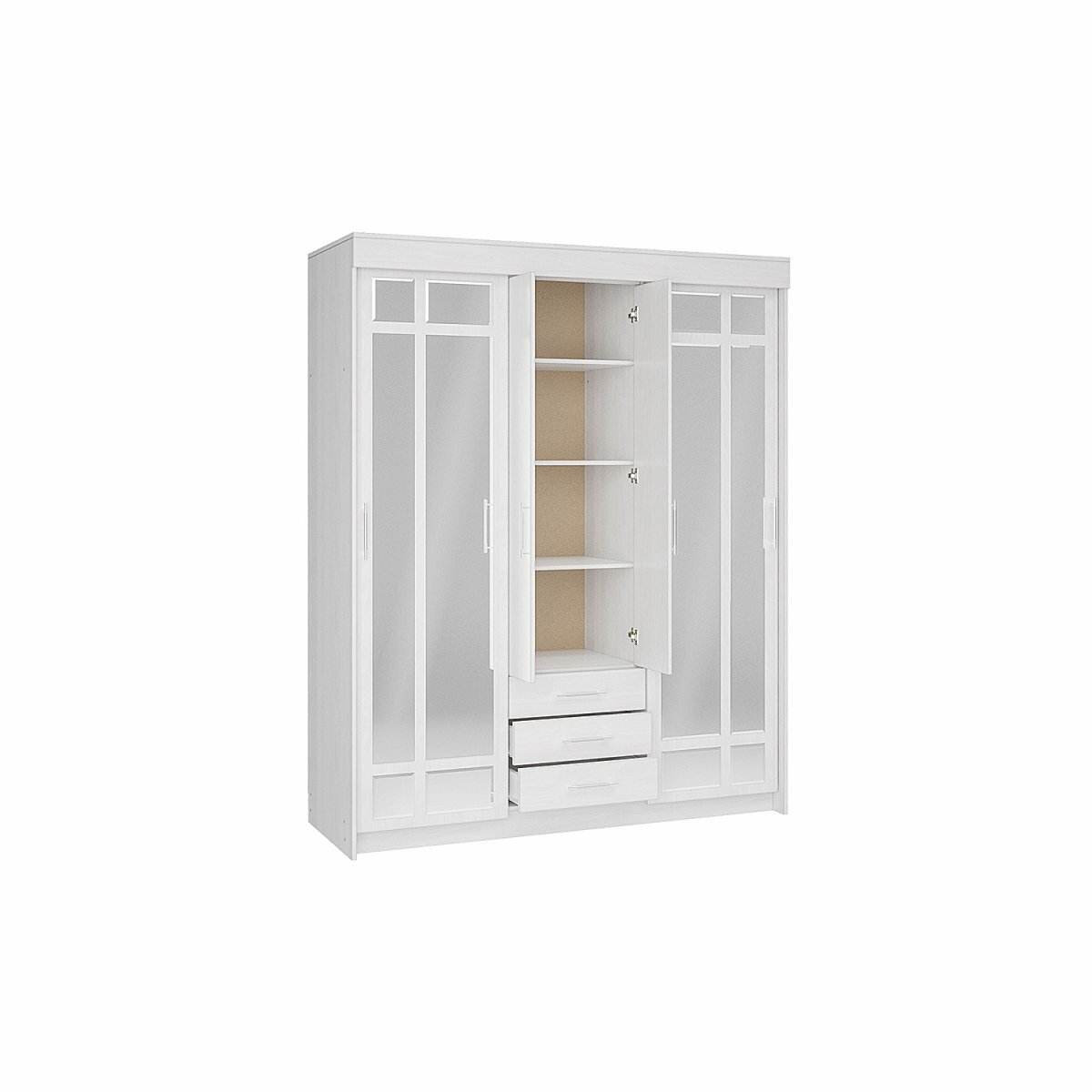 Шкаф для одежды распашной Нонтон Луас, 120 см, 7 полок и штанга, белый глянец