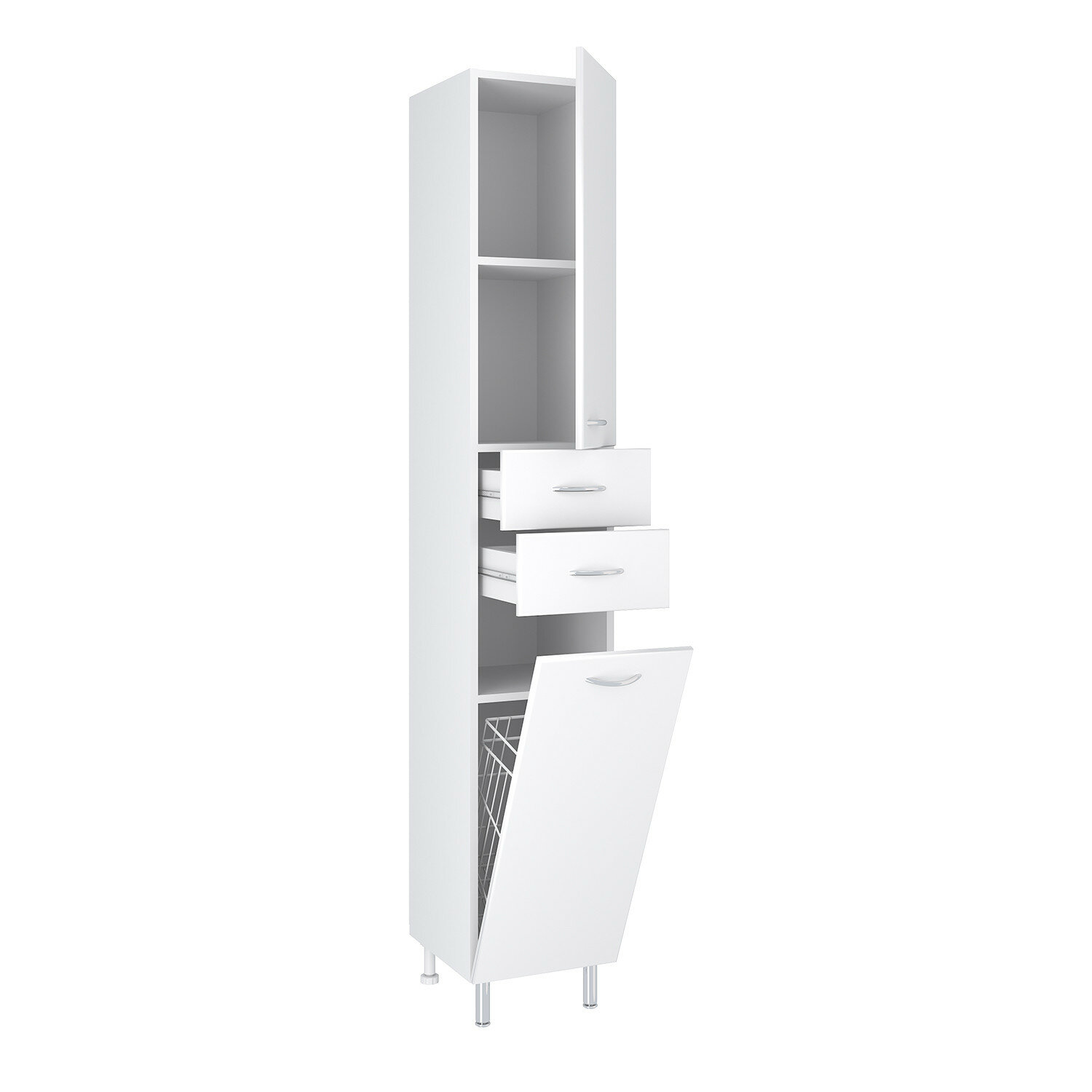 Шкаф пенал Runo Эконом 30 R 00000000126 с бельевой корзиной Белый