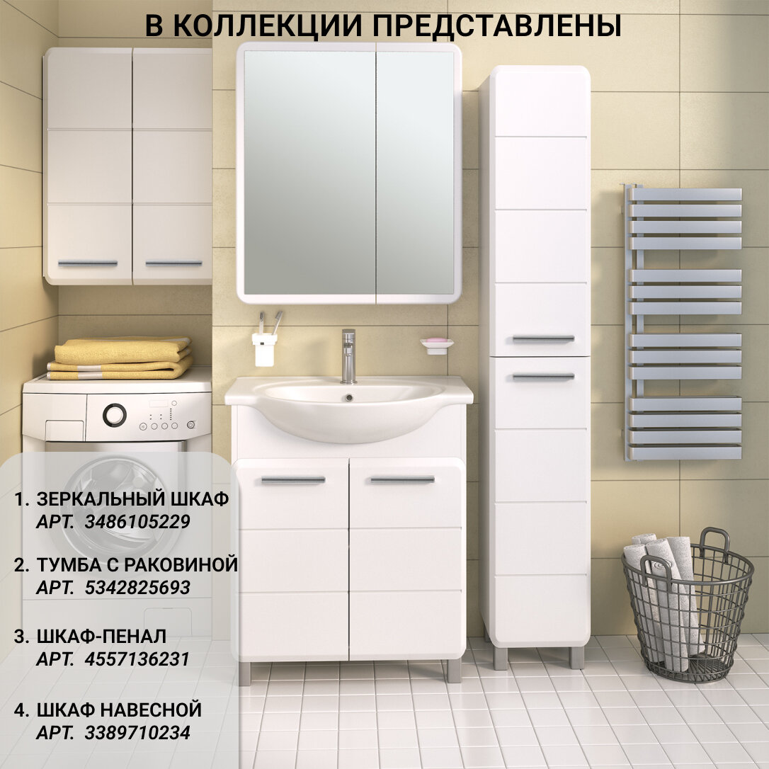 Шкаф в ванную пенал напольный Runo / Эрика 30, универсальный