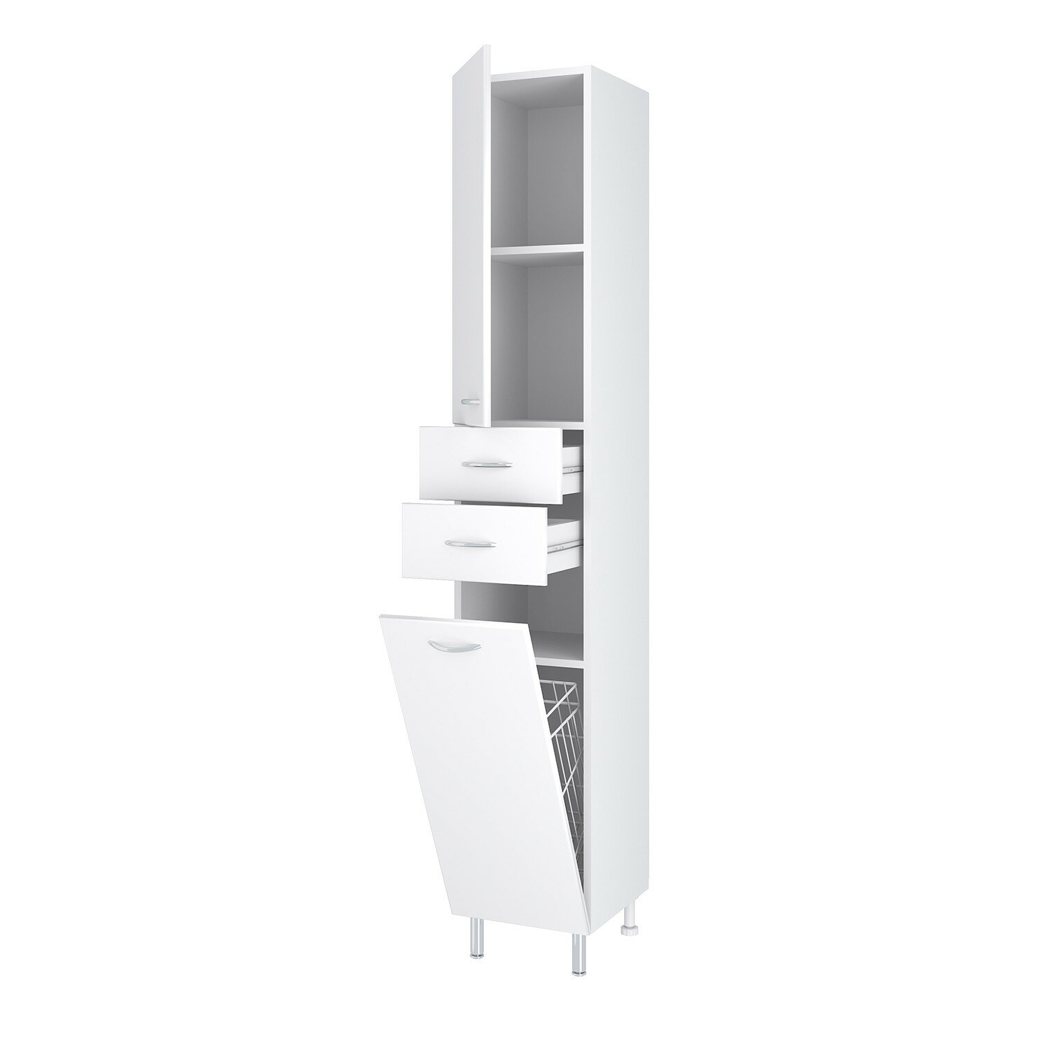 Шкаф пенал Runo Эконом 35 R 00000000130 с бельевой корзиной Белый