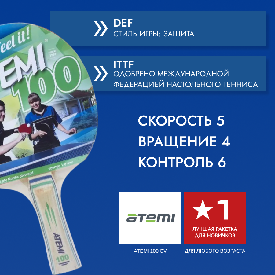 игры для активного отдыха Ракетка для настольного тенниса Atemi 100 CV . интересное: