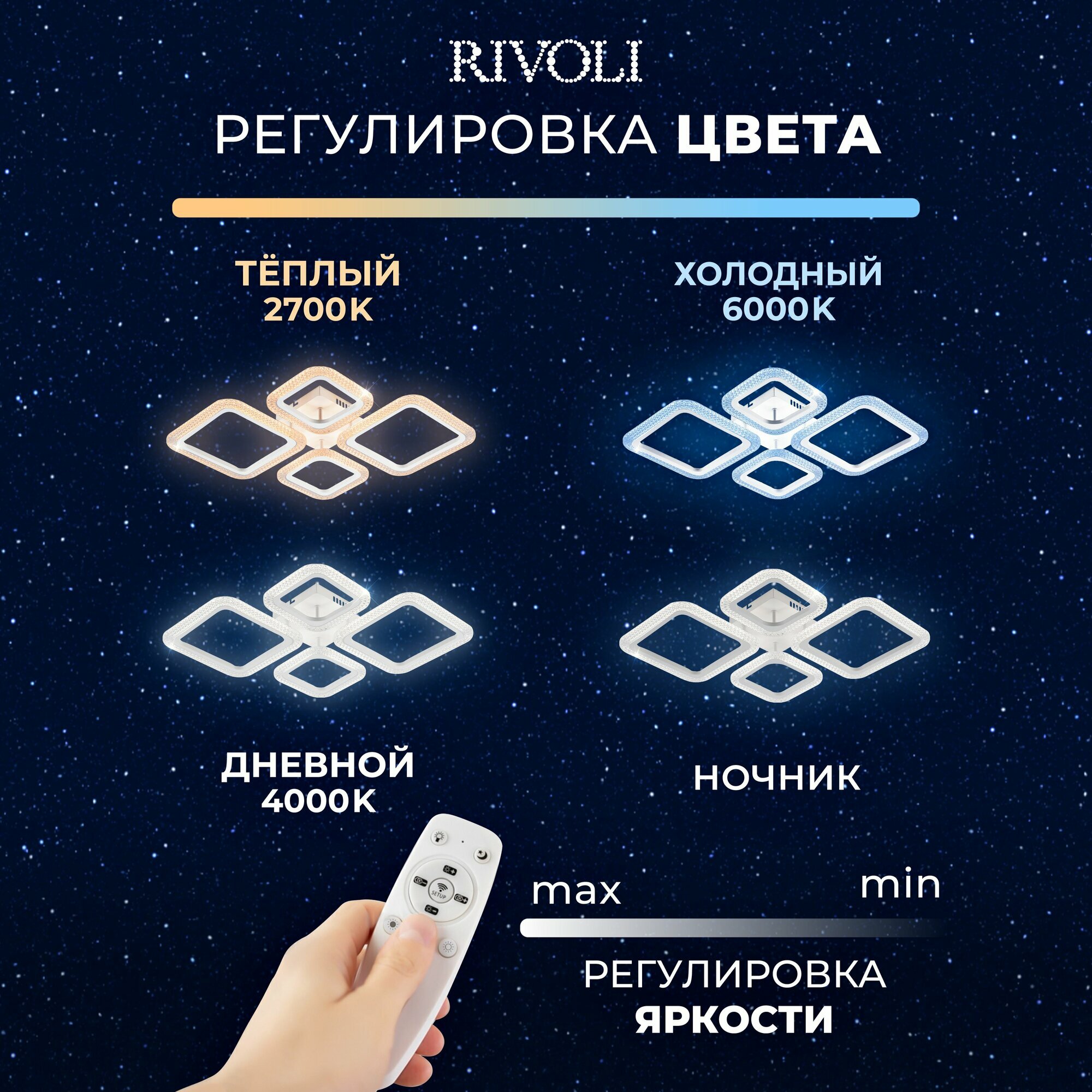 СохранитьСветильник потолочный светодиодный Rivoli Nikki 6112-107 с пультом ДУ, модерн, 84 Вт, 2800К - 6200К интересное: