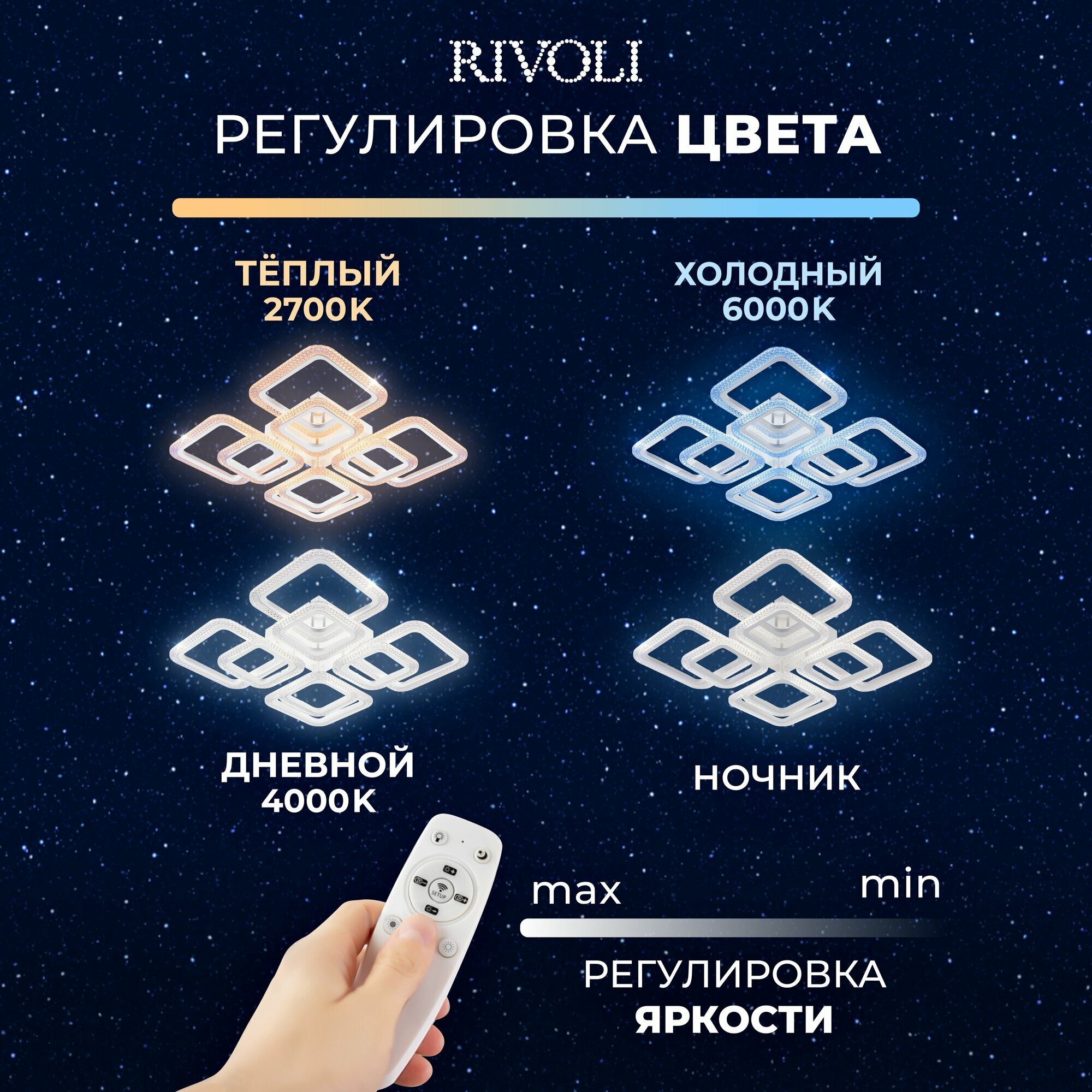 СохранитьСветильник потолочный светодиодный Rivoli Nikki 6112-108 с пультом ДУ модерн, белая, 168 Вт, 2800К - 6200К интересное: